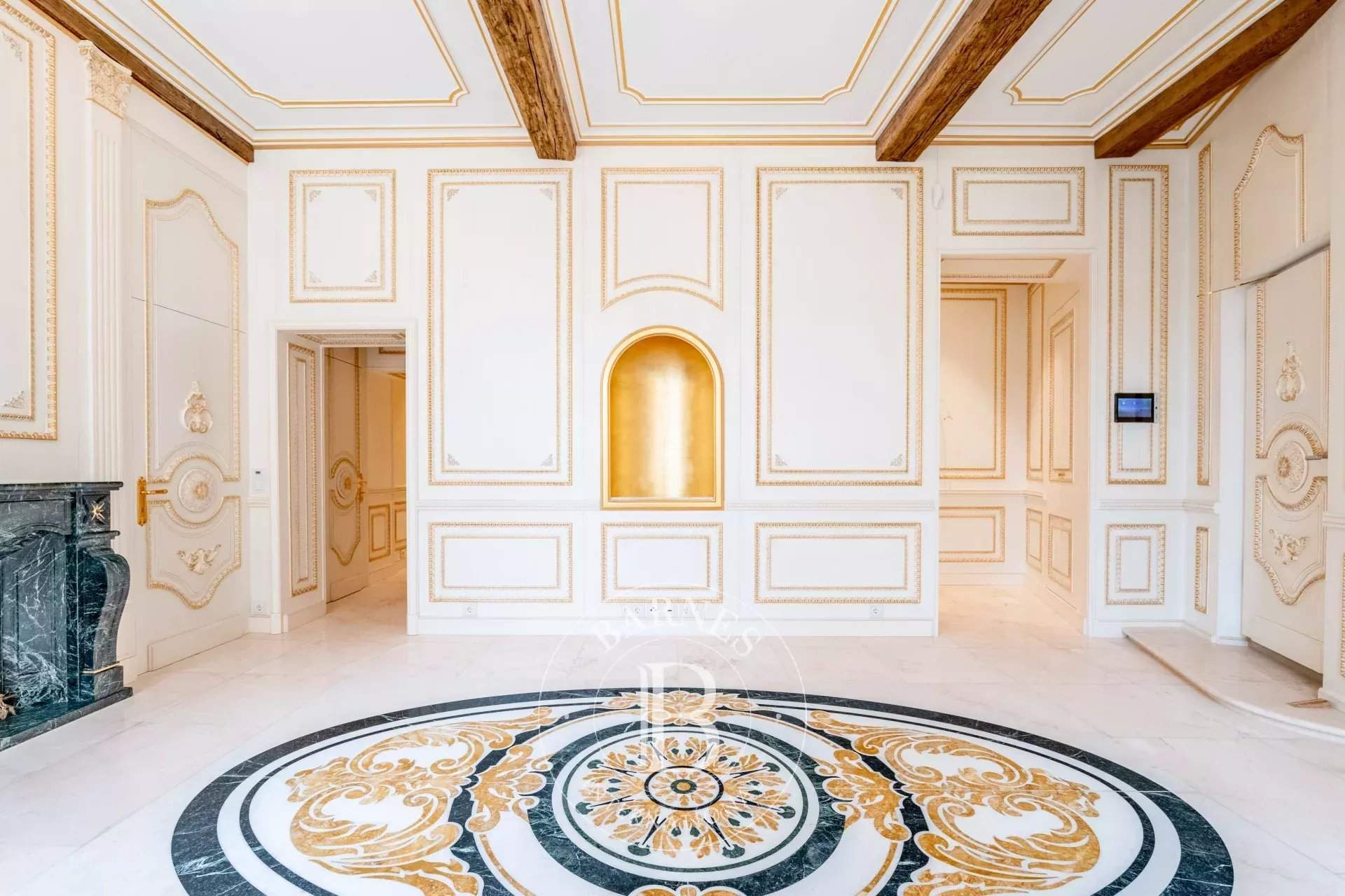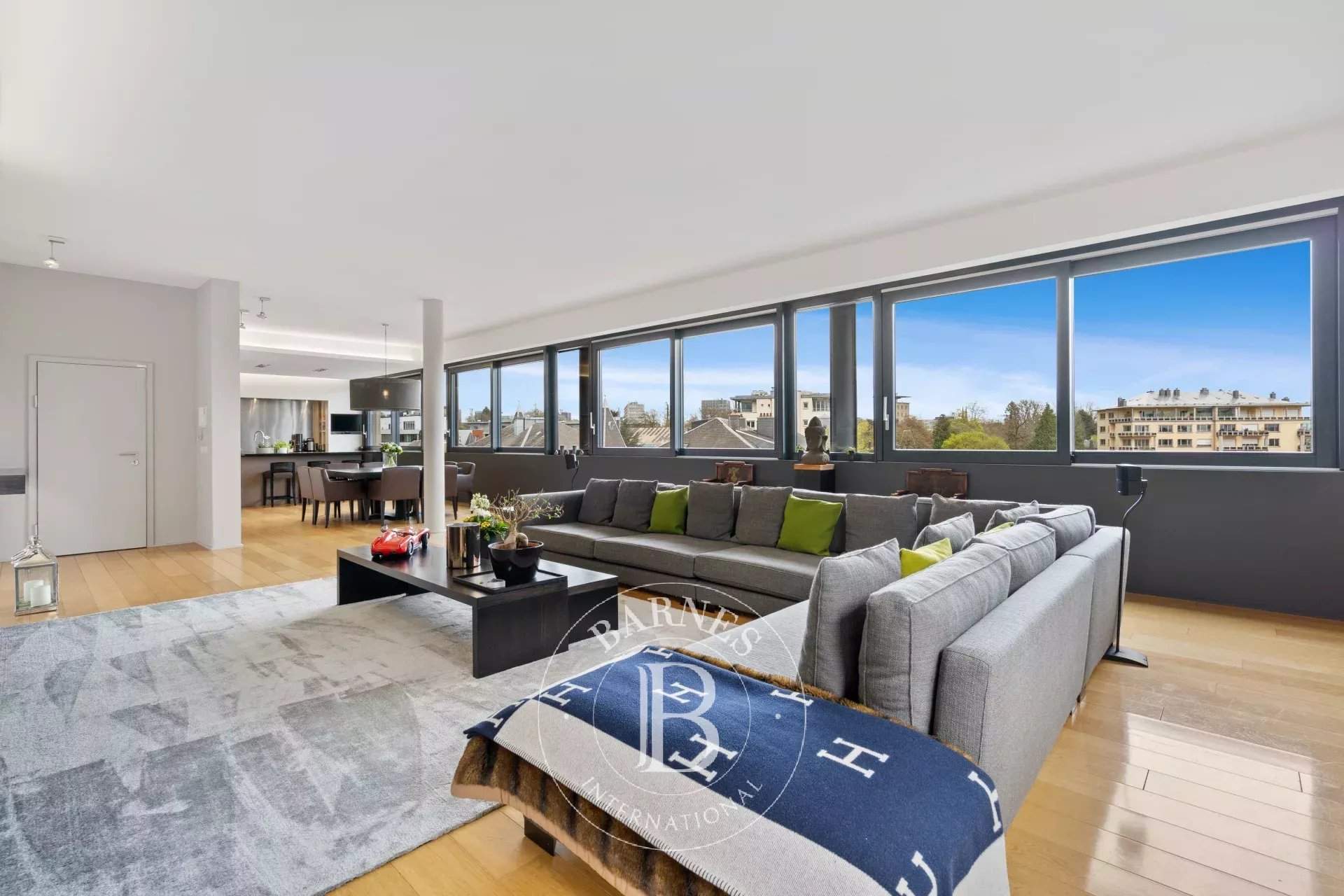 Barnes invites you to discover this magnificent penthouse in the heart of the city. With an area of ??approximately 300m2, it offers very beautiful volumes, ultra bright, and it is composed as follows: a large entrance hall, a cloakroom, a guest toilet, a double living room with an open fire, a dining room, a fully equipped American kitchen from the Bulthaup...