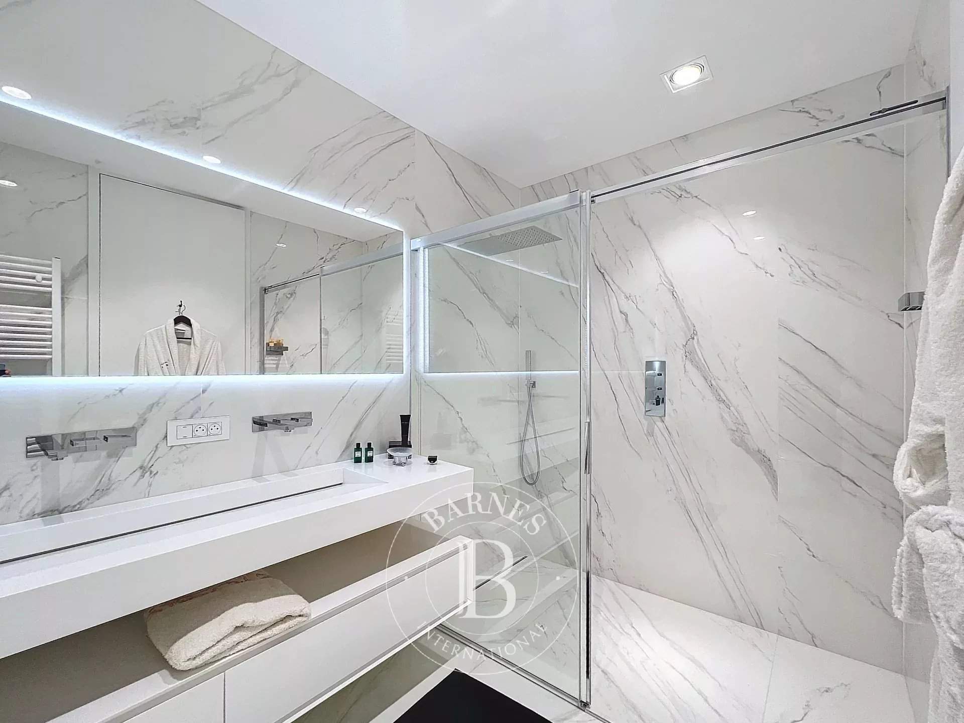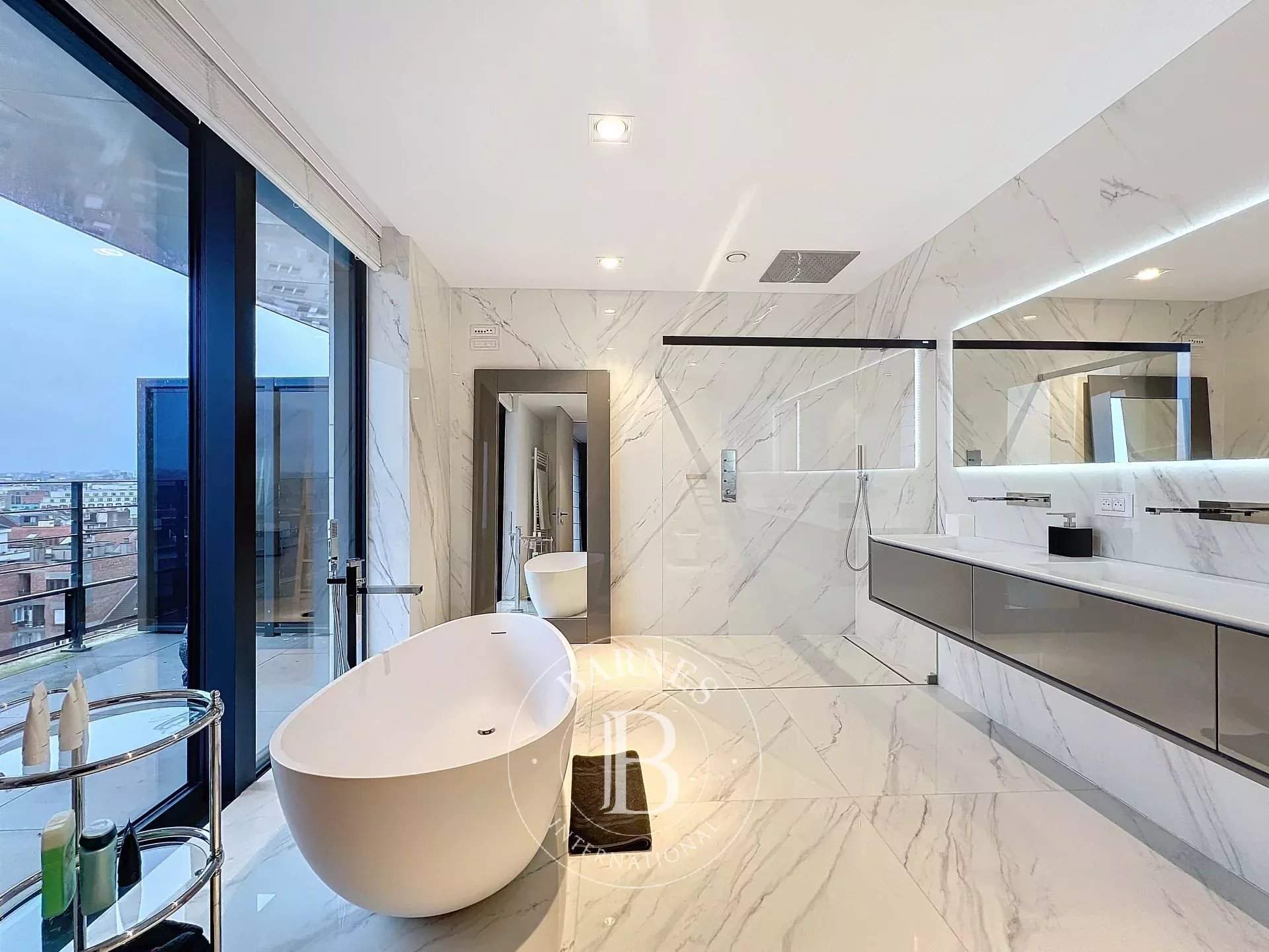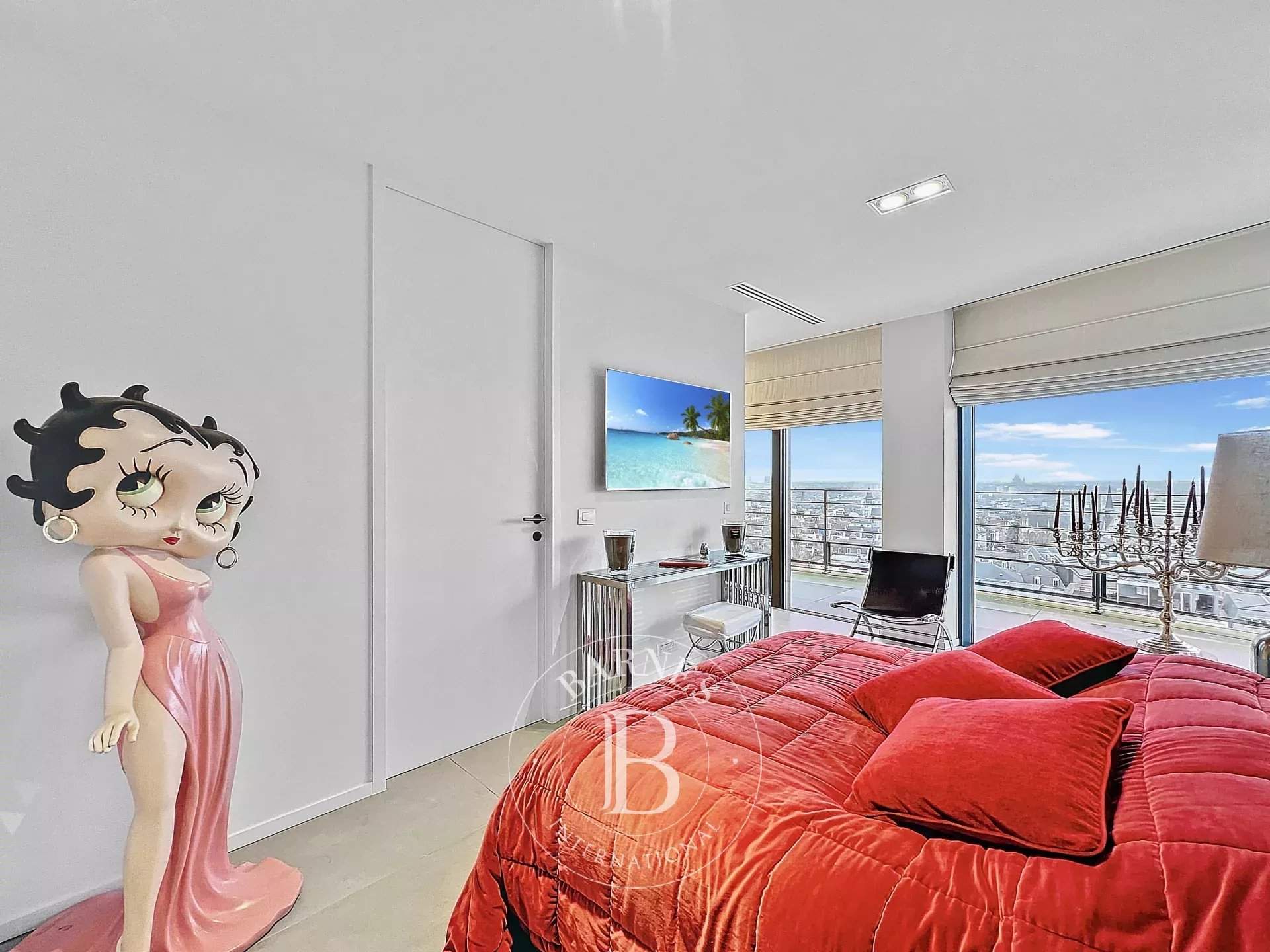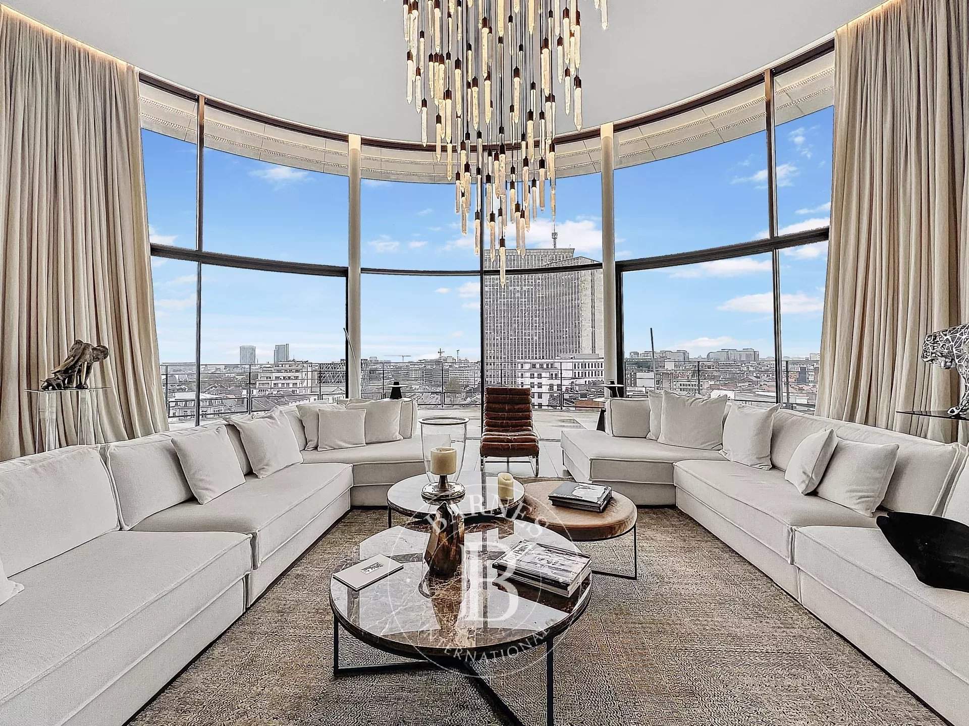 Barnes invites you to discover this magnificent penthouse in the heart of the city. With an area of ??approximately 300m2, it offers very beautiful volumes, ultra bright, and it is composed as follows: a large entrance hall, a cloakroom, a guest toilet, a double living room with an open fire, a dining room, a fully equipped American kitchen from the Bulthaup brand with Gaggenau equipment, a bar, and a large 205m2 terrace with its superb breathtaking view of the capital and its historical monuments. The sleeping area consists of the master bedroom with its dressing room and en-suite bathroom, a second bedroom with its en-suite shower room, and finally a third bedroom with access from inside the apartment and also from a door leading into the common areas (ideal for an independent studio). P...