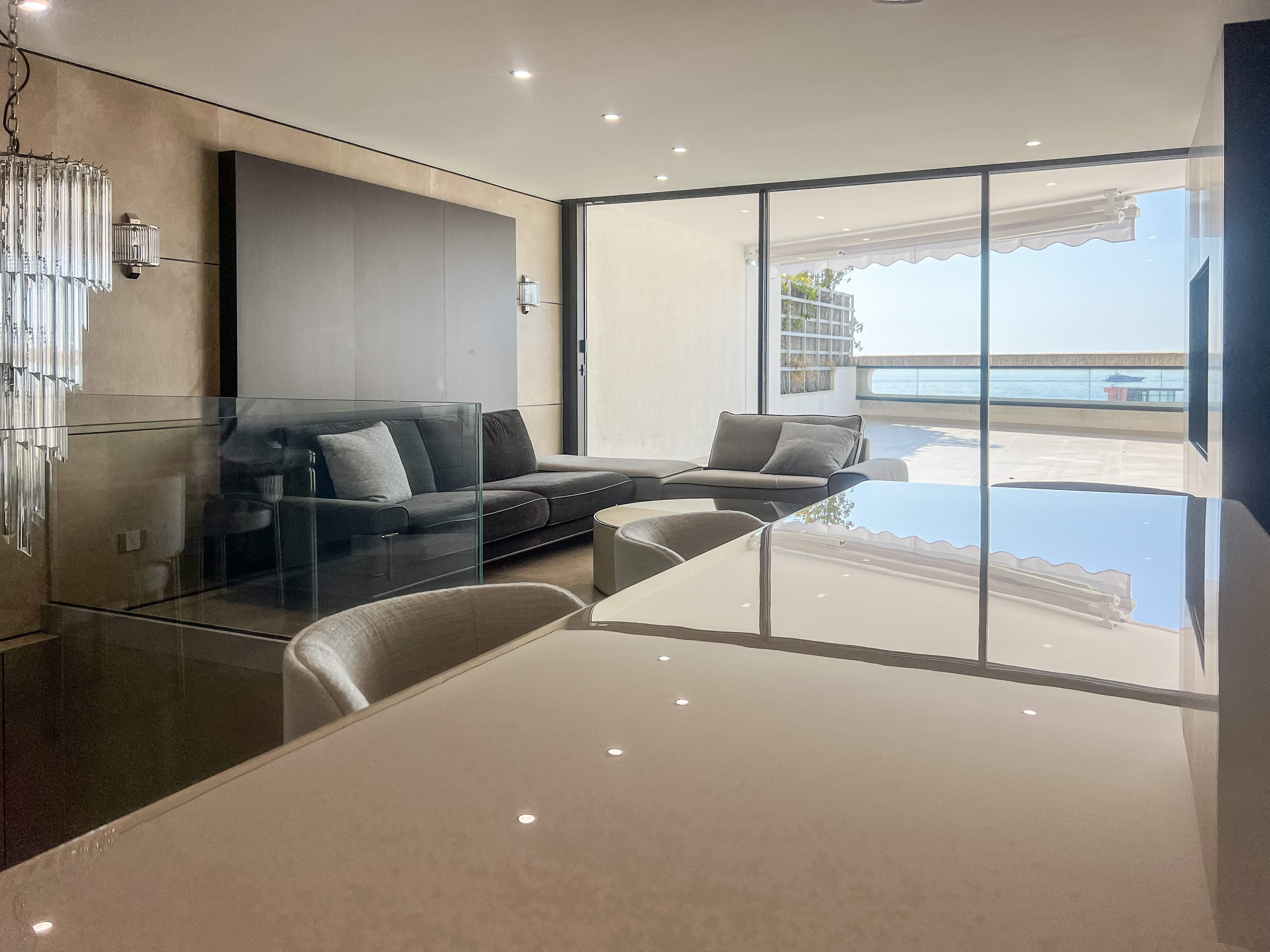 Located in a luxury residence with 24-hour concierge service and indoor swimming pool. This luxurious 2-bedroom duplex flat has been completely renovated in a contemporary style. Its seafront position gives it a magnificent view of the port and the Rock. Its west exposure guarantees it gets plenty of natural light. It comprises : 4th Floor The entrance, leading to a large living room and an open kitchen A large terrace in the continuity of the living room 3rd Floor A master bedroom with bathroom and a private loggia A bedroom that can be used as an office with shower room A guest toilet A laundry Currently leased one-year lease renewable on the 01/10/2026, monthly rent 24 000 €....