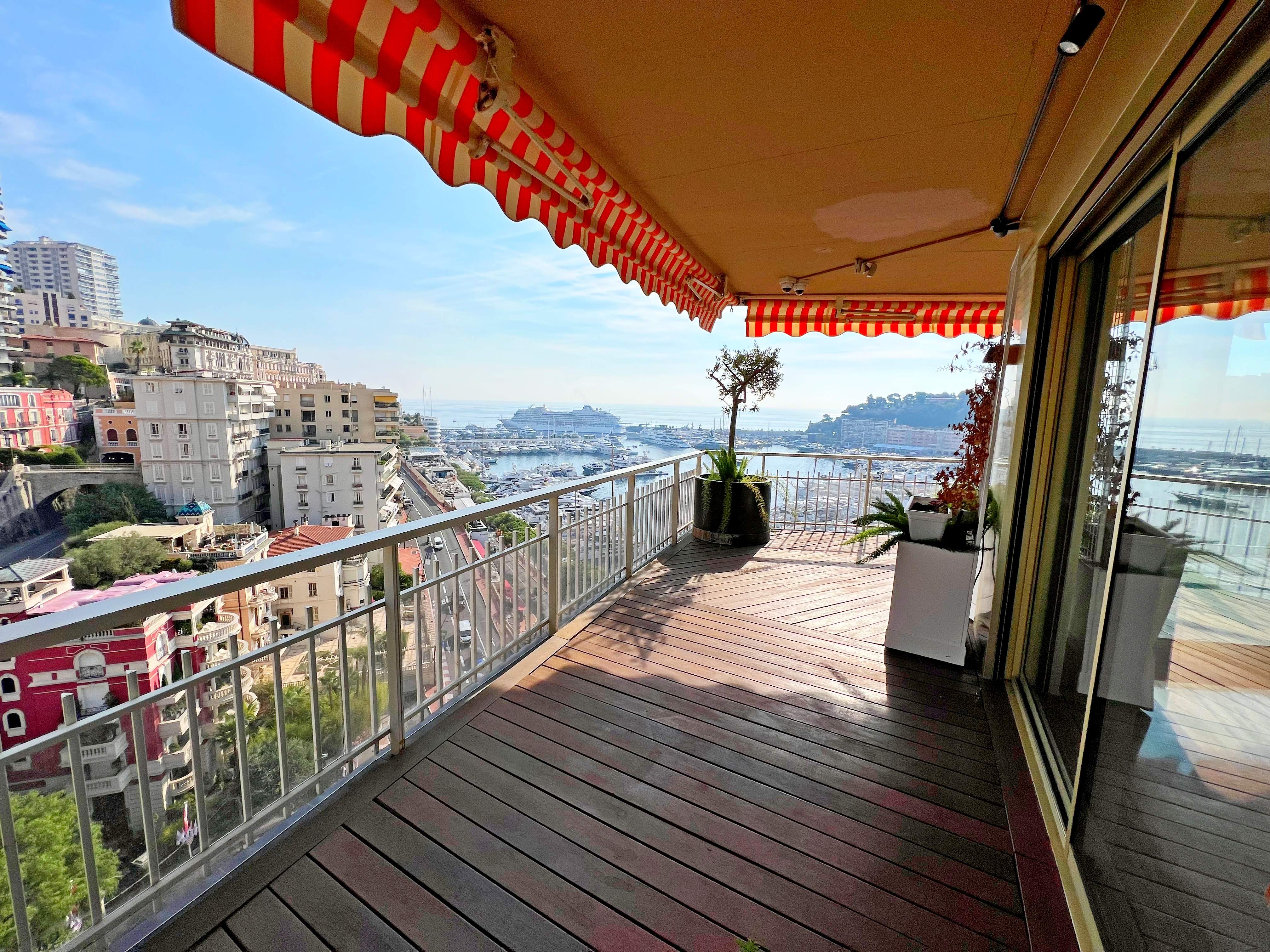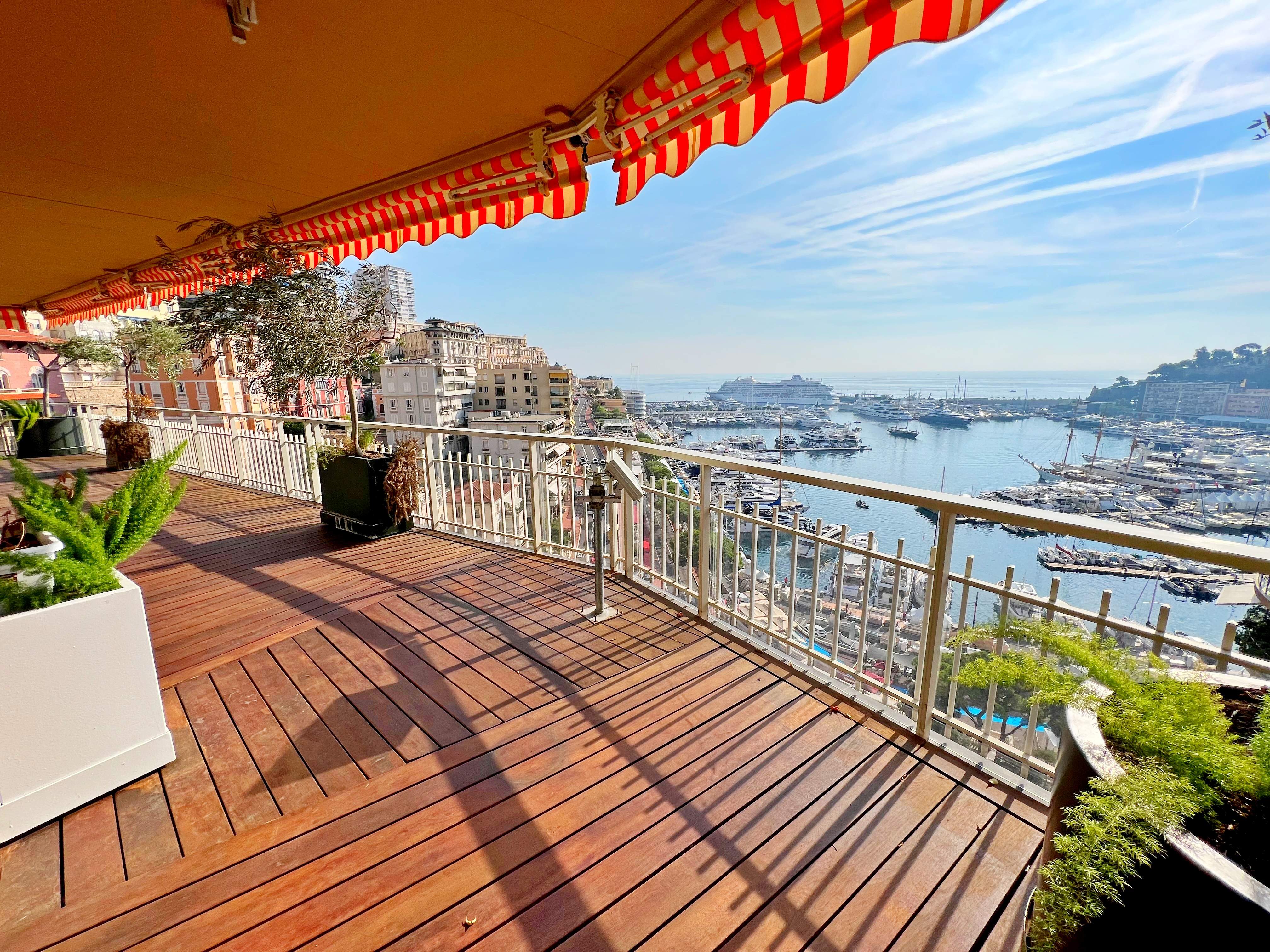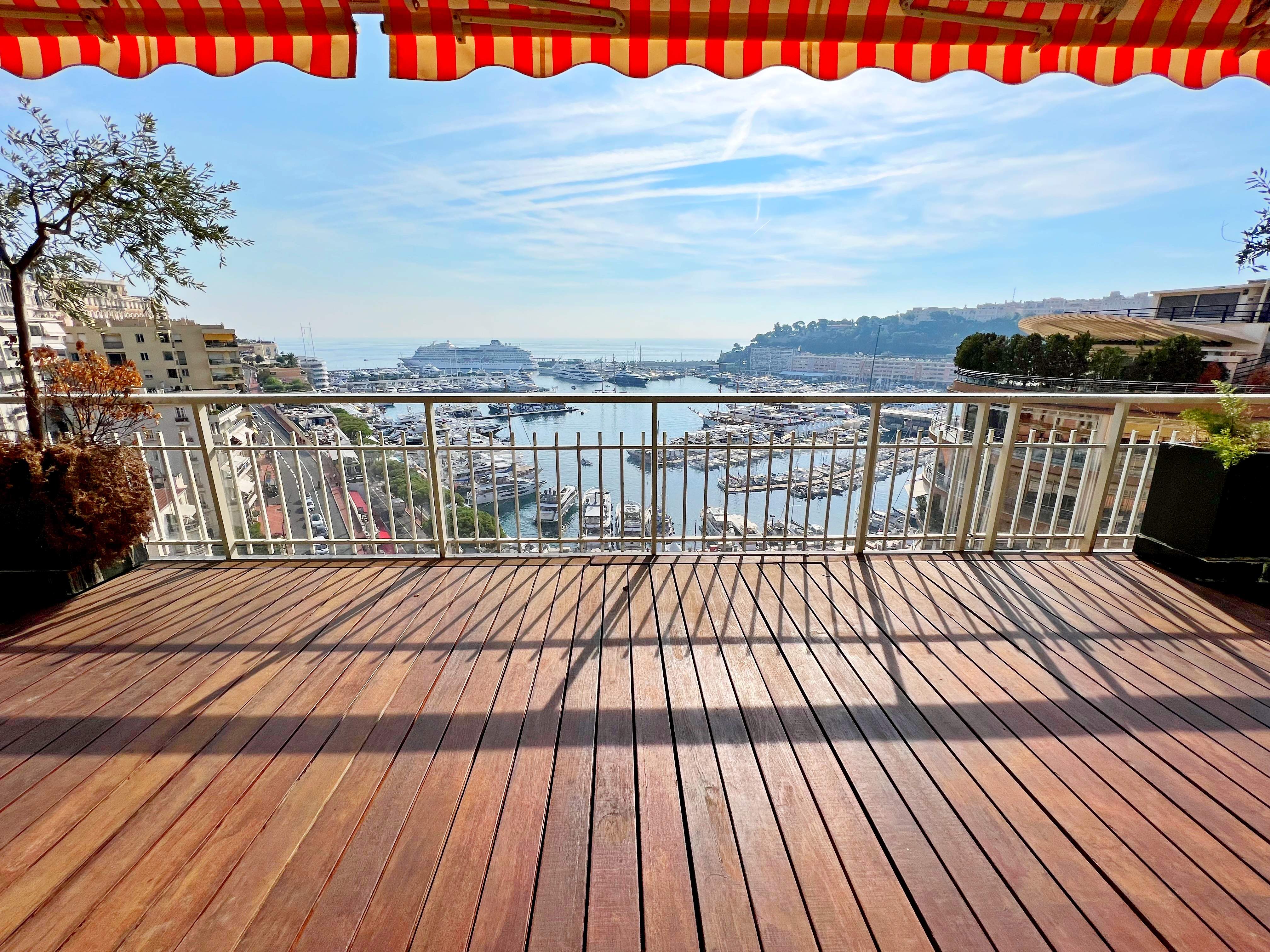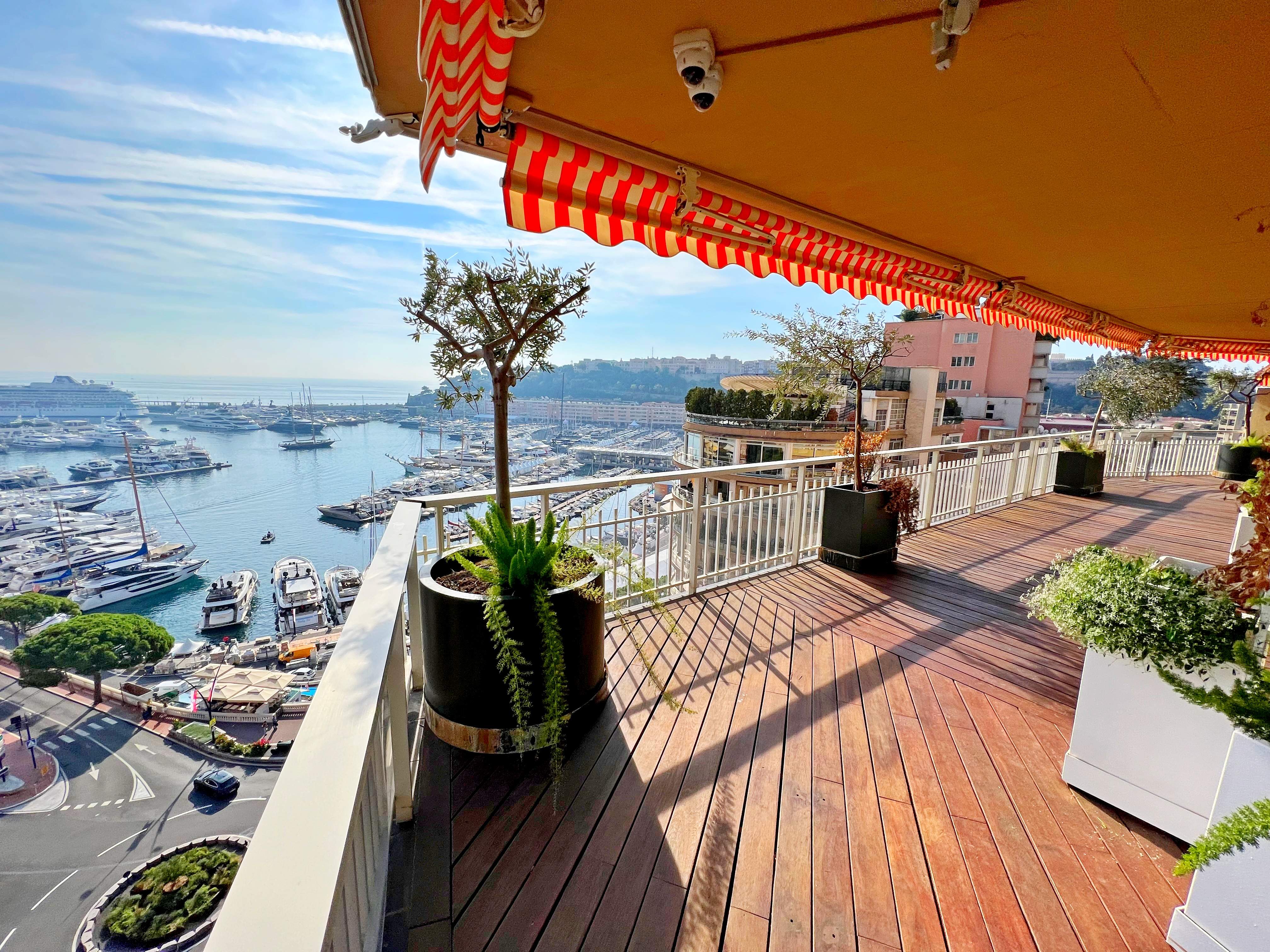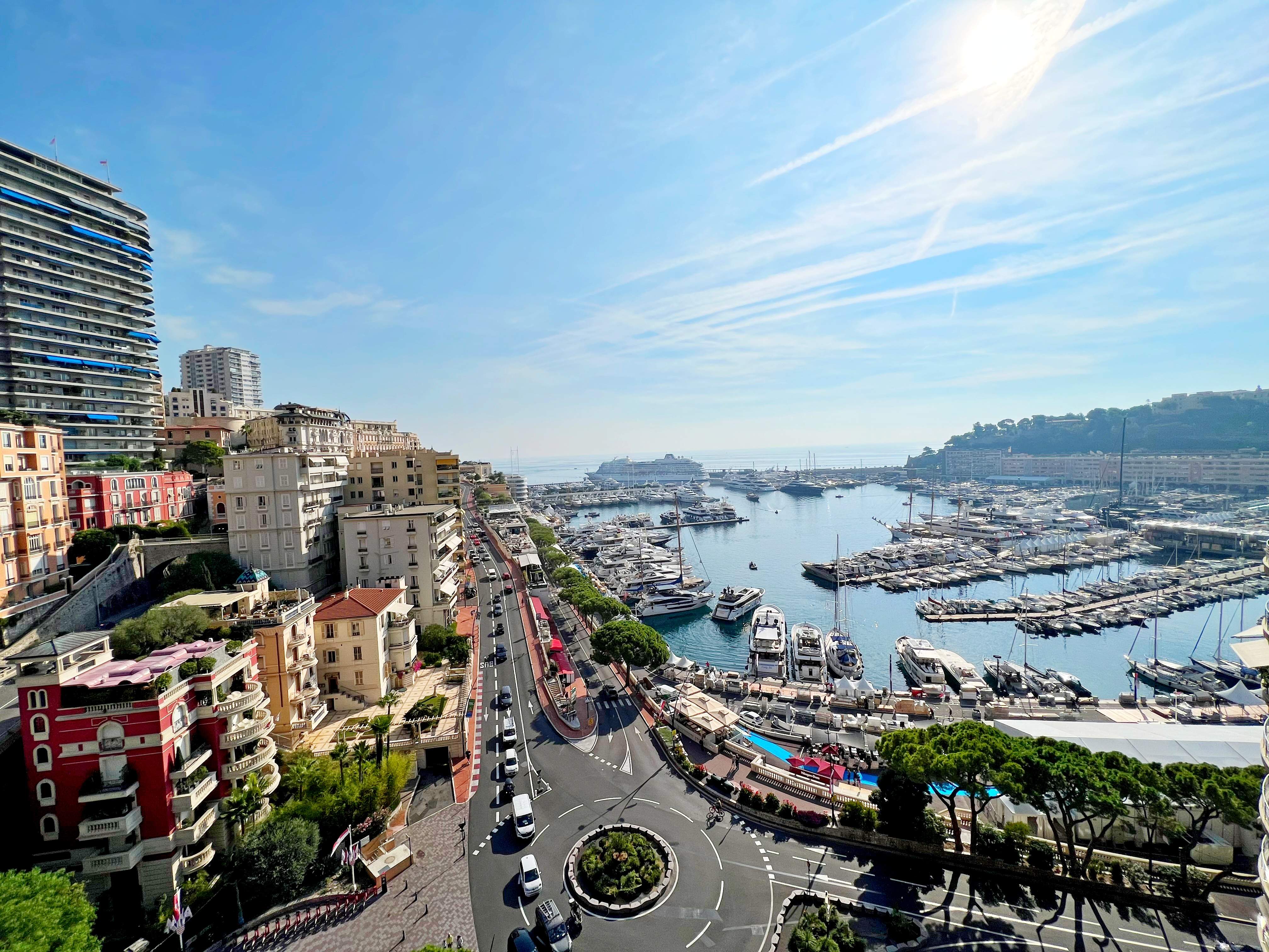 Located in a luxury residence with concierge on the port of Monaco. Strategic location with quick access to many areas of the Principality and close to all amenities. This walk-through, corner flat enjoys magnificent views over Monaco harbour, the sea and the Formula 1 circuit, overlooking the famous Sainte-Dévote bend. This recently renovated 3-bedroom apartment currently comprises an entrance hall, a spacious double living/dining room, a bedroom with a full shower room and plenty of storage space, 2 bedrooms with storage space, a shower room, a fully-equipped separate kitchen and a guest toilet. All the rooms have access to a terrace, including 2 bedrooms and the living room, which has access to the largest terrace, which enjoys excellent exposure and a magnificent view over the port. Se...