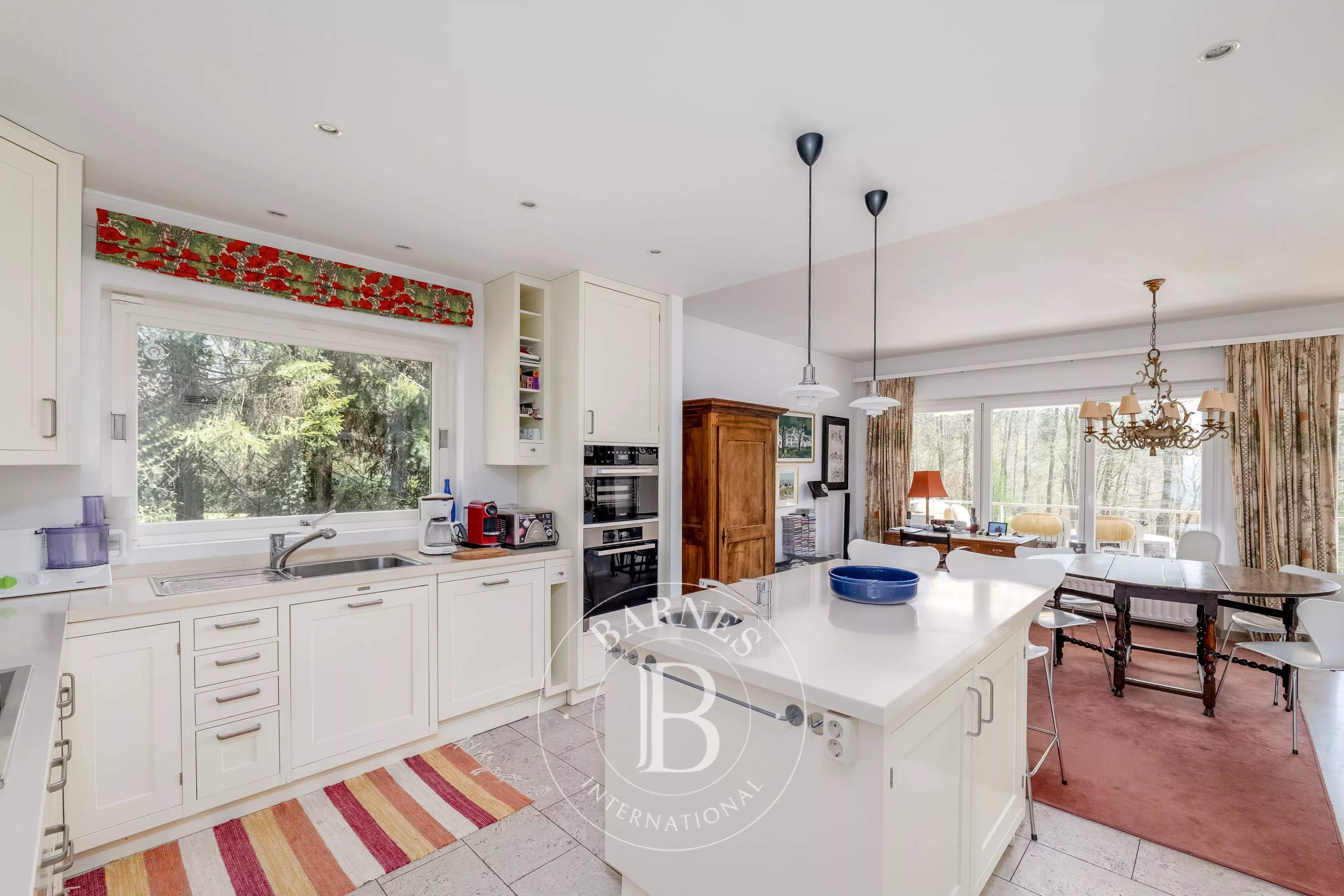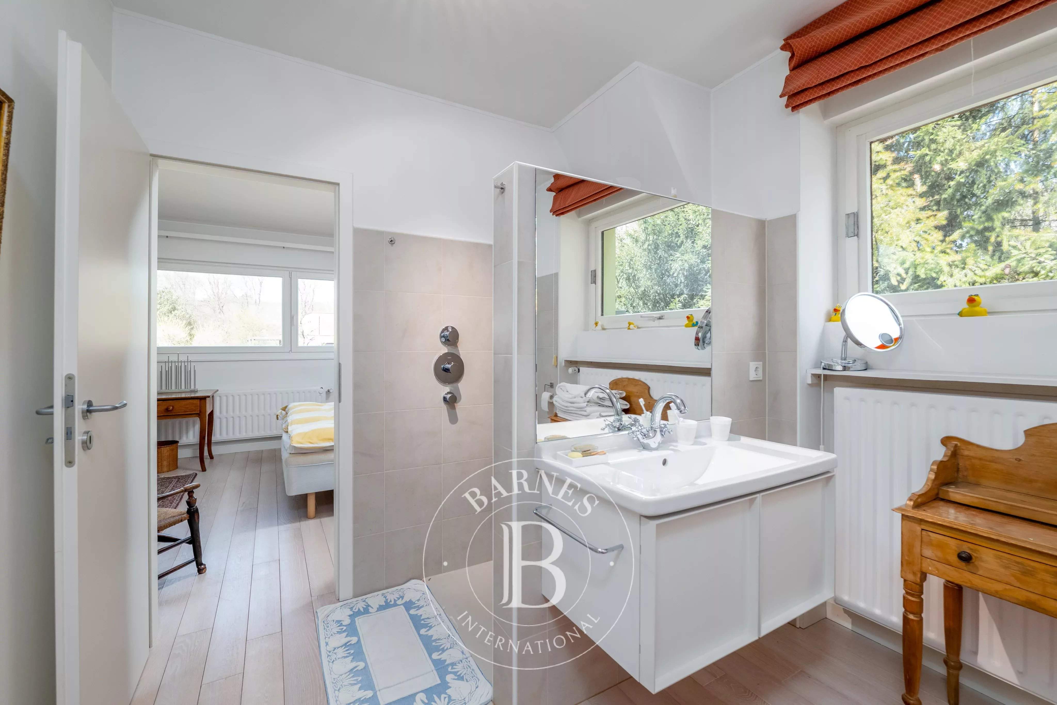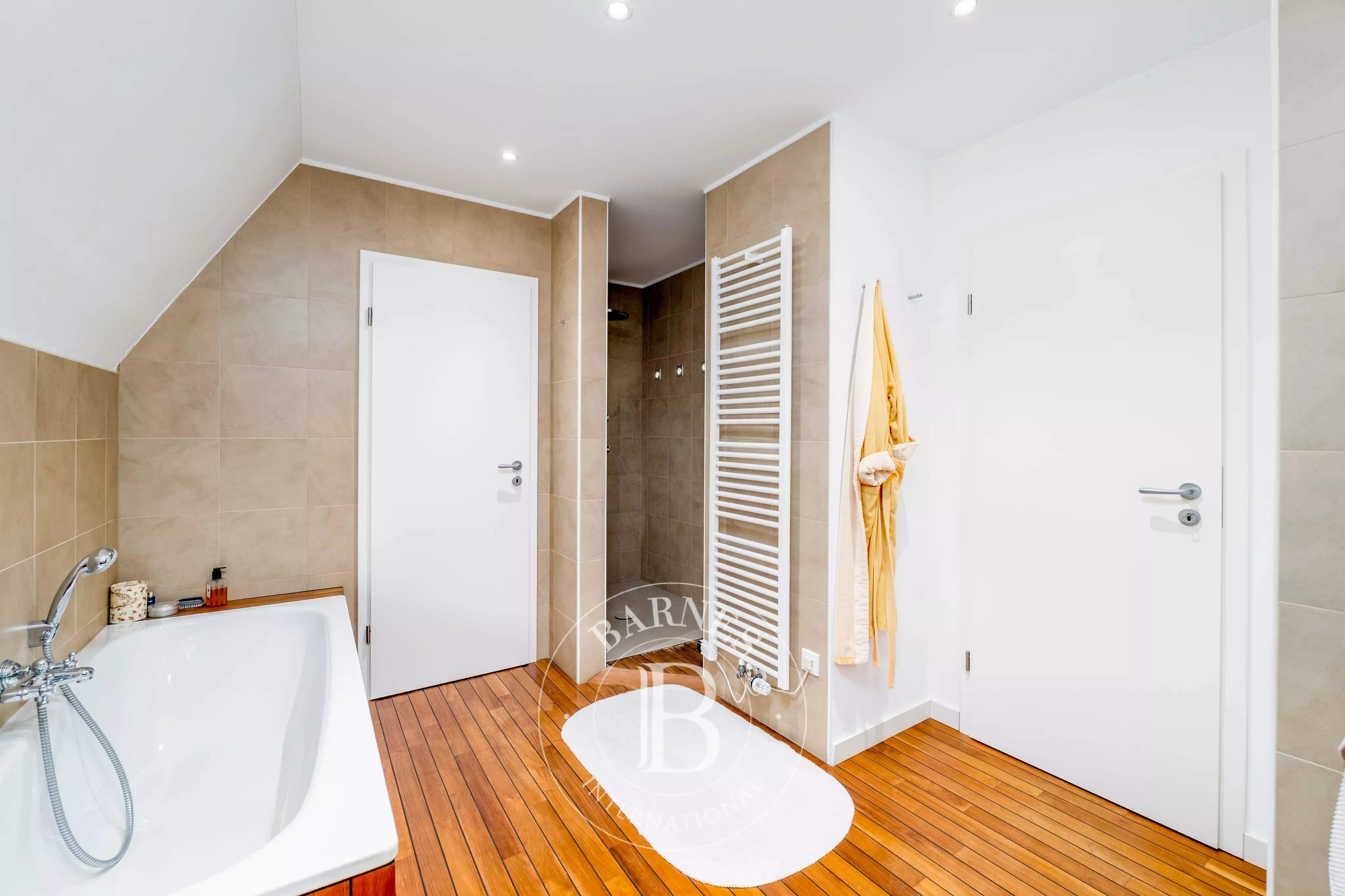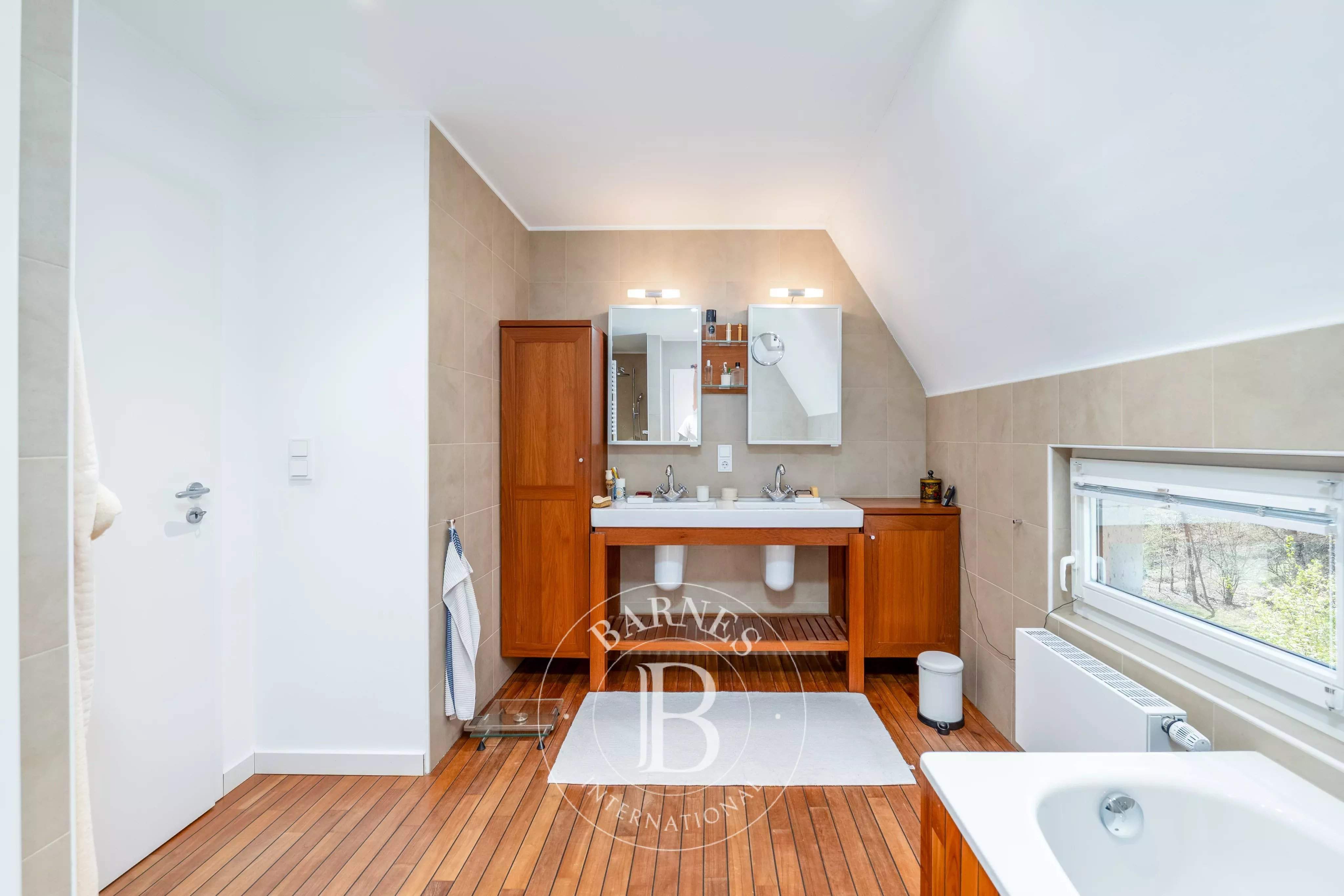 BARNES Luxembourg offers you this detached house in the sought-after Brameshhof estate in the commune of Kehlen. It is a property built in an exceptional setting with unique features. With approx. 300 m² of living space and a total area of approx. 420 m², it stands out for its Scandinavian-style ambience and contemporary architecture. Here are the main features of this property: - Living area: approx. 300 m² - Total surface area: approx. 400 m² - Land : 31,25 ares - Number of levels : 4 (Basement, Ground floor, 1st floor, Unfinished attic) - Number of bedrooms: 5 spacious bedrooms on 1st floor and level -1, - Bathrooms: 2 bathrooms with bath and shower, 1 separate shower room, 1 separate toilet - Garage: 2-car capacity + 2 outdoor parking spaces with carport - Additional features: 2 balcon...
