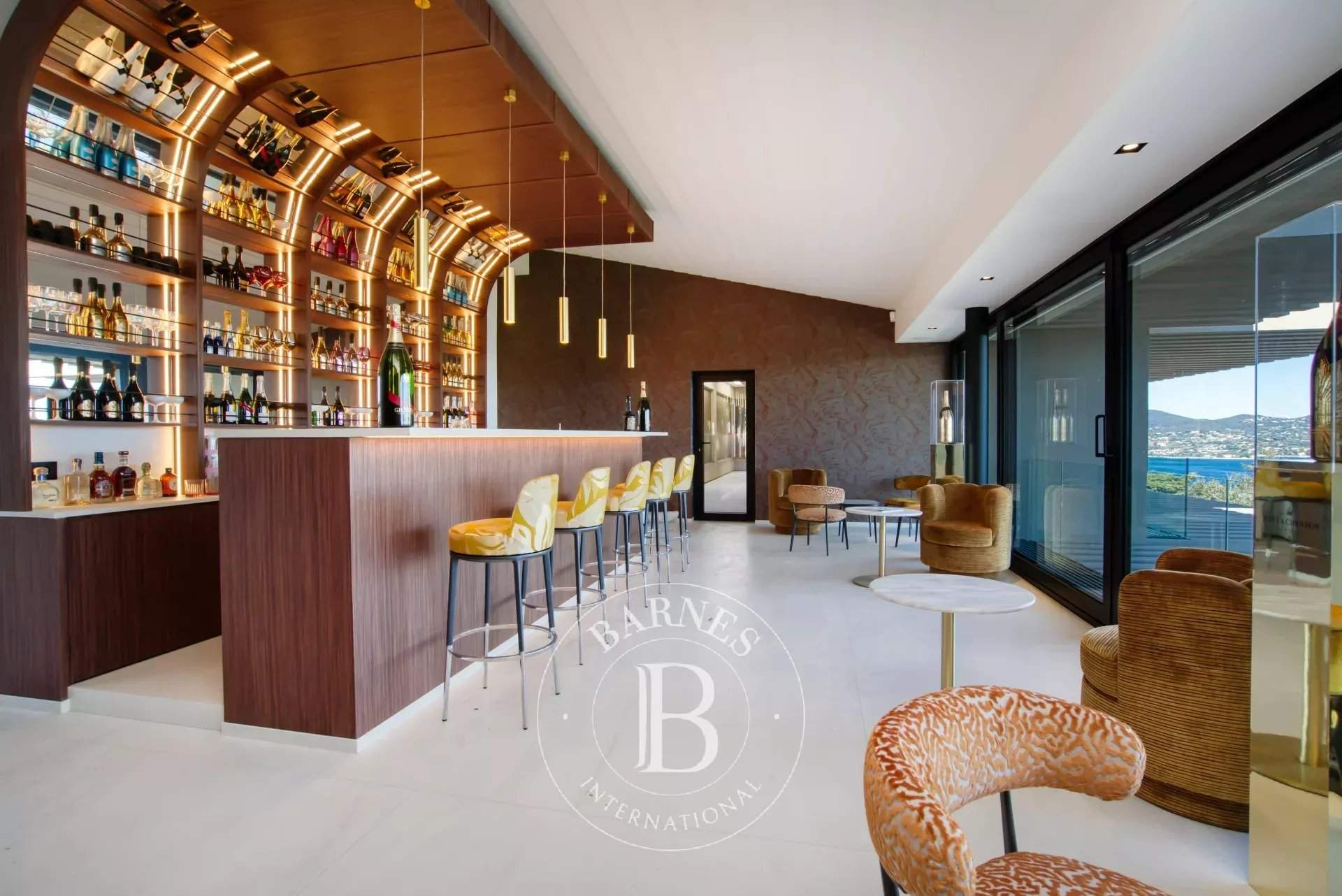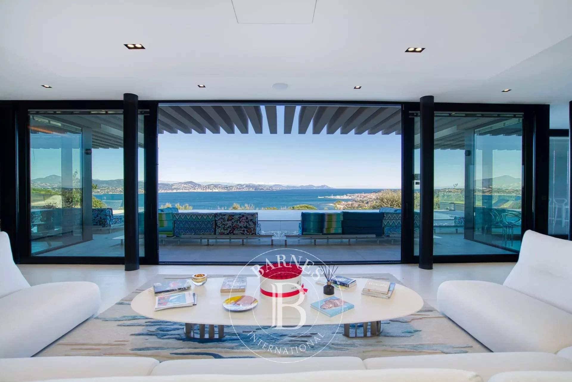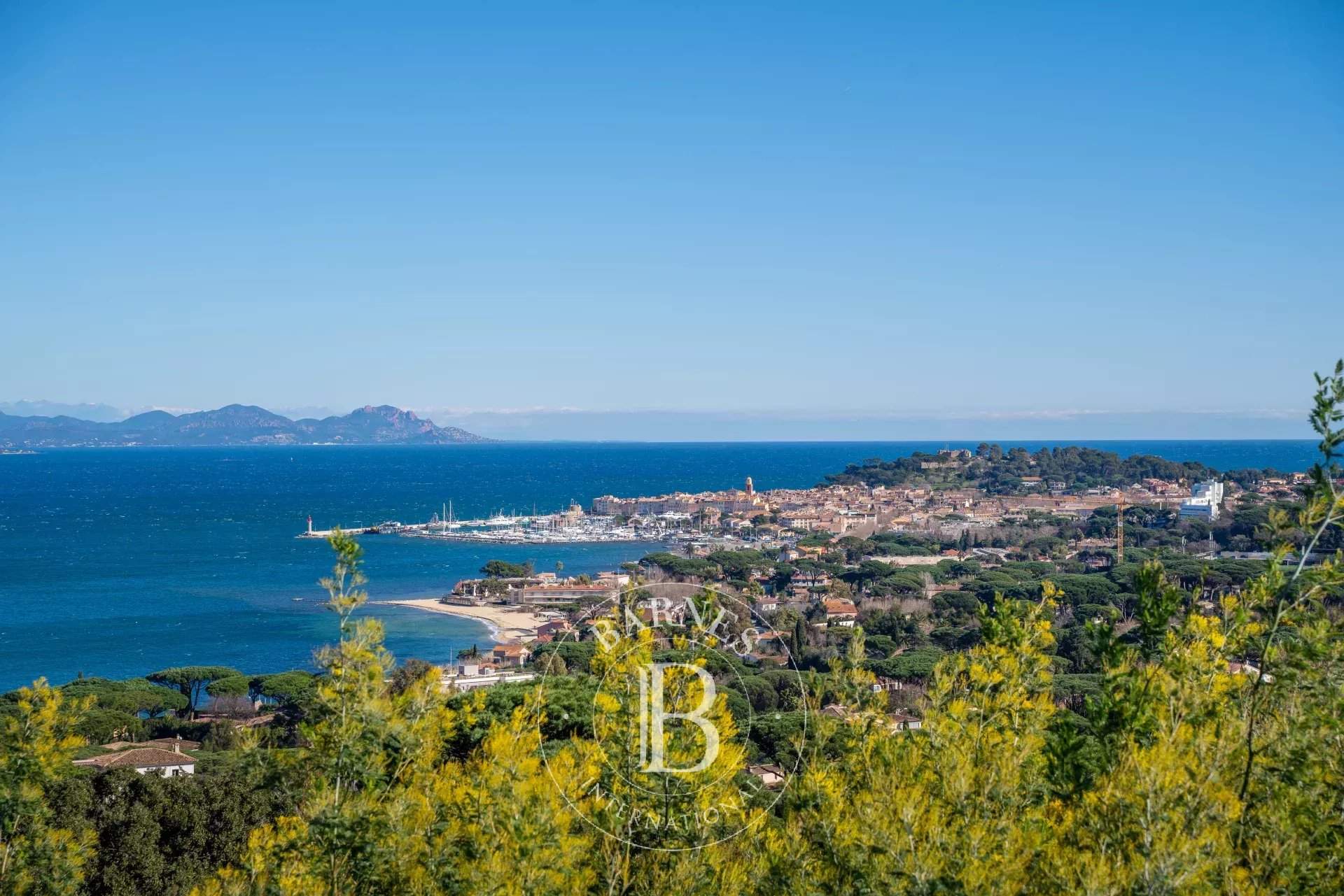 Just minutes from the prestigious village of Saint-Tropez, this luxury villa captivates with its contemporary and unique architecture, blending elegance and modernity. With 750 m² of living space, it harmoniously integrates into an exclusive setting, offering a breathtaking panoramic view of the sea and the village. Designed to provide generous volumes and optimal brightness, the villa stands out with its large glass facades, sleek lines, and high-end materials. It features five luxurious suites, each with its own private bathroom, as well as an independent apartment with a bedroom and kitchen, perfect for hosting guests in a private and refined atmosphere. Created for absolute comfort and well-being, the property boasts outstanding amenities, including a heated swimming pool, a sauna, a g...