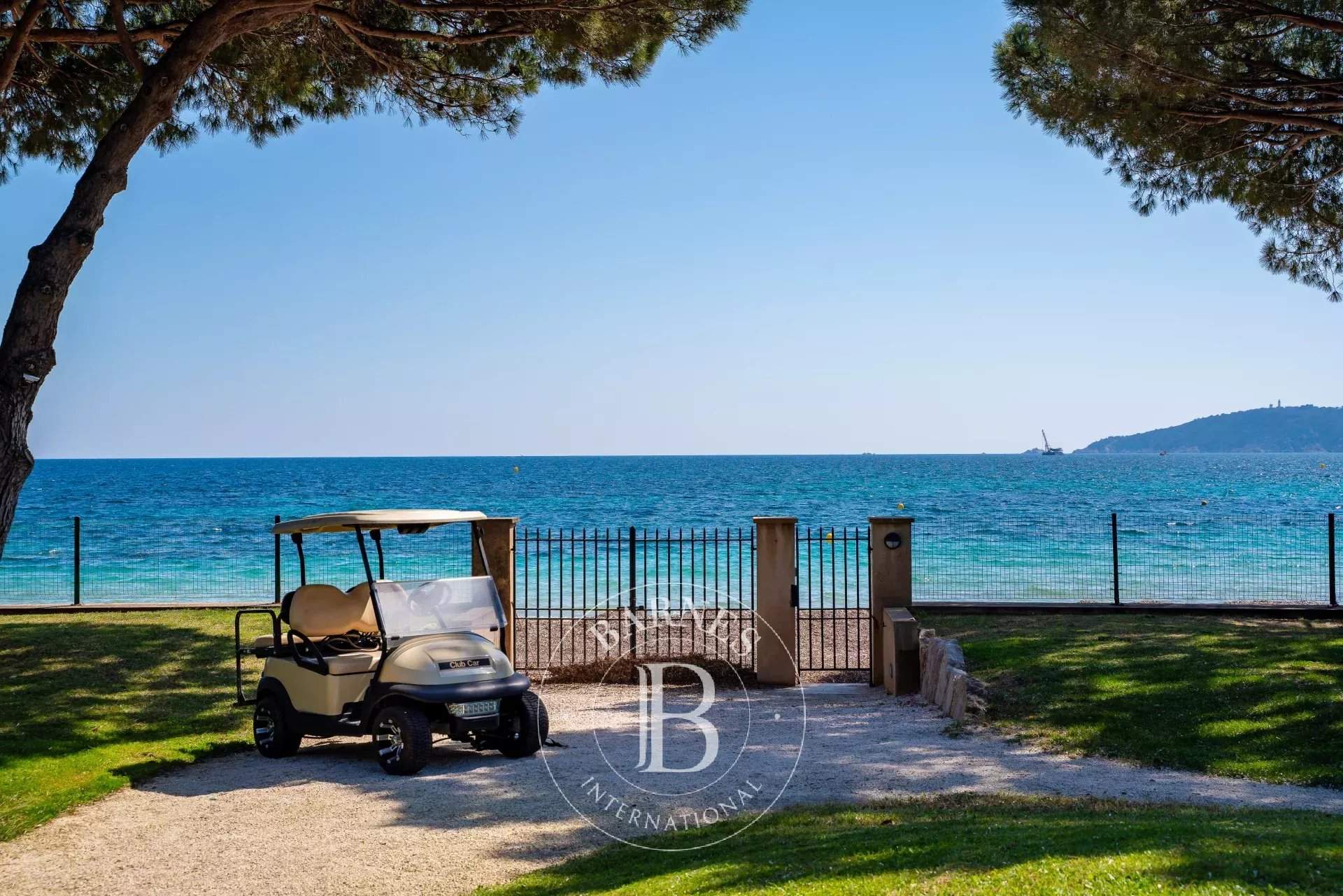 Located in the sought-after Pampelonne area, in the heart of a private, secure estate, this 600 m² property enjoys an exceptional seaside location. Just 300 meters from the beach and facing south, it offers a peaceful and privileged setting, ideal for both family life and receptions. The villa includes two large living rooms opening onto beautiful terraces with bioclimatic pergolas extending the living space, a dining room, an office, seven spacious en-suite bedrooms with private terraces, as well as a wellness area featuring a hammam, a massage room and a bar. Two kitchens, a scullery, a wine cellar, a laundry room and a staff apartment with separate entrance complete the ensemble. The living rooms open onto around 300 m² of terraces, offering unobstructed views of the sea, Pampelonne bea...
