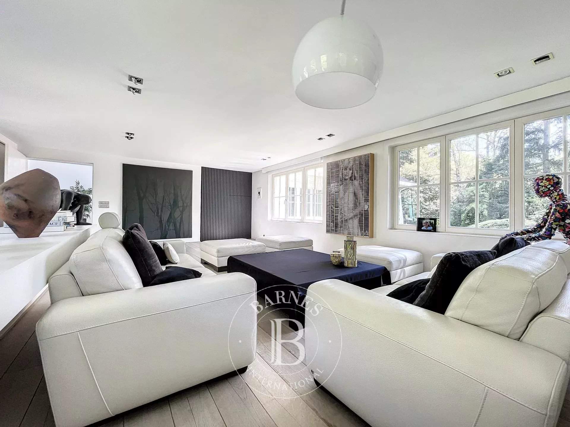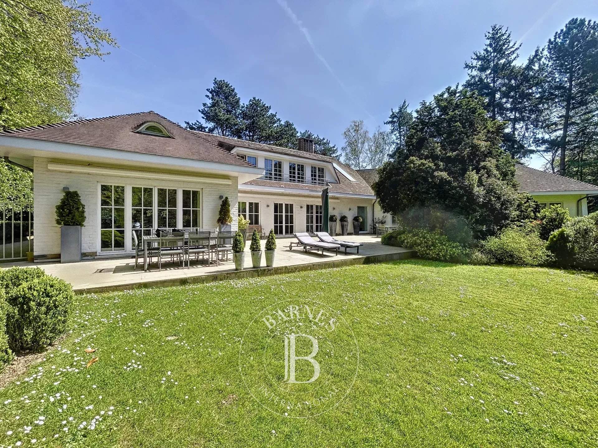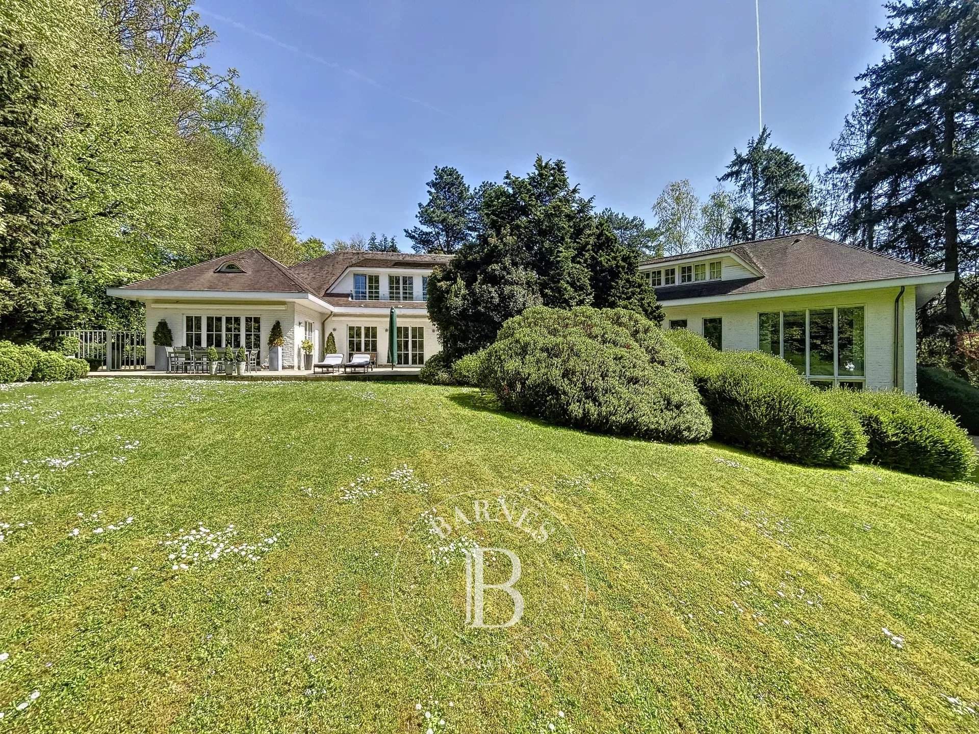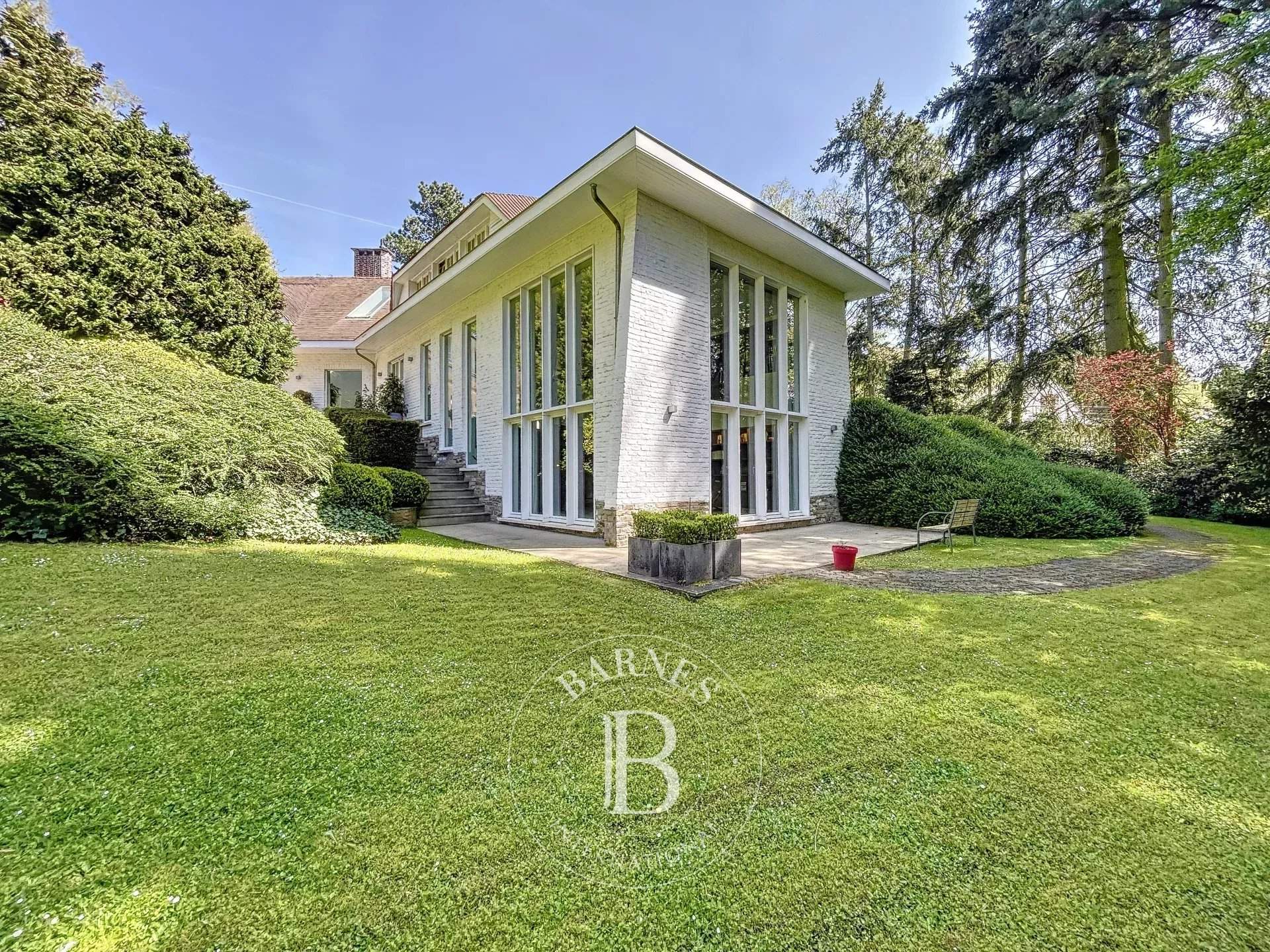 Barnes is privileged to present an exceptional property, designed by Claire Bataille and Olivier Dwek, emblematic figures of contemporary architecture, and built in 2002. With a gross living area of 765 m² (source PEB) and nestled in 56 acres of beautifully wooded, south-facing grounds, this property elegantly combines art de vivre, rare volumes and omnipresent light. The south-facing garden, a veritable jewel-case of greenery, invites you to relax and contemplate. From the moment you enter, a spectacular hall welcomes you, revealing the purity of its lines and the subtlety of its perspectives. The receptions, designed for refined entertaining, include a vast double living room, a sophisticated bar, a fully equipped designer kitchen with dining area, a service kitchen, a separate dining ro...