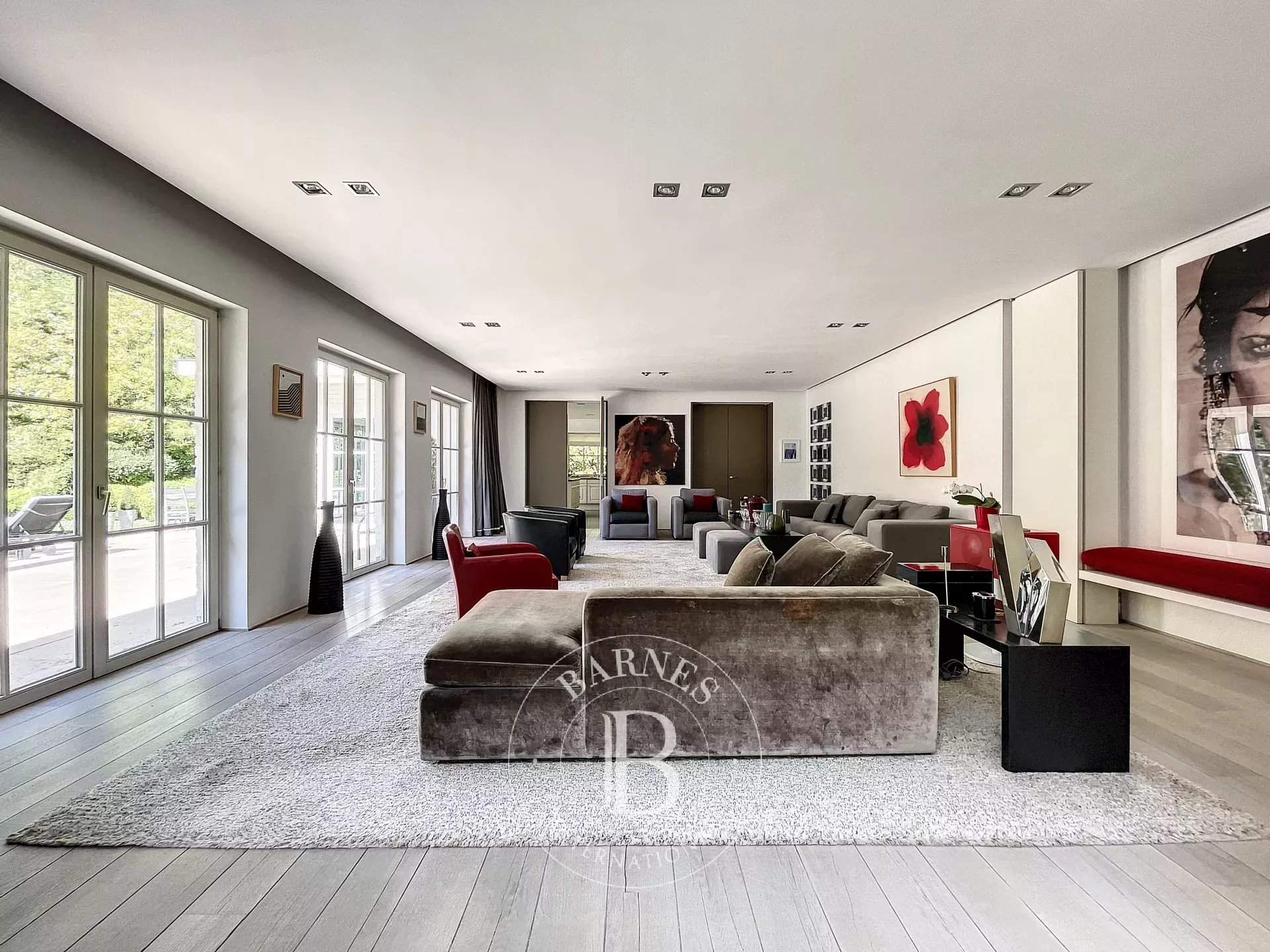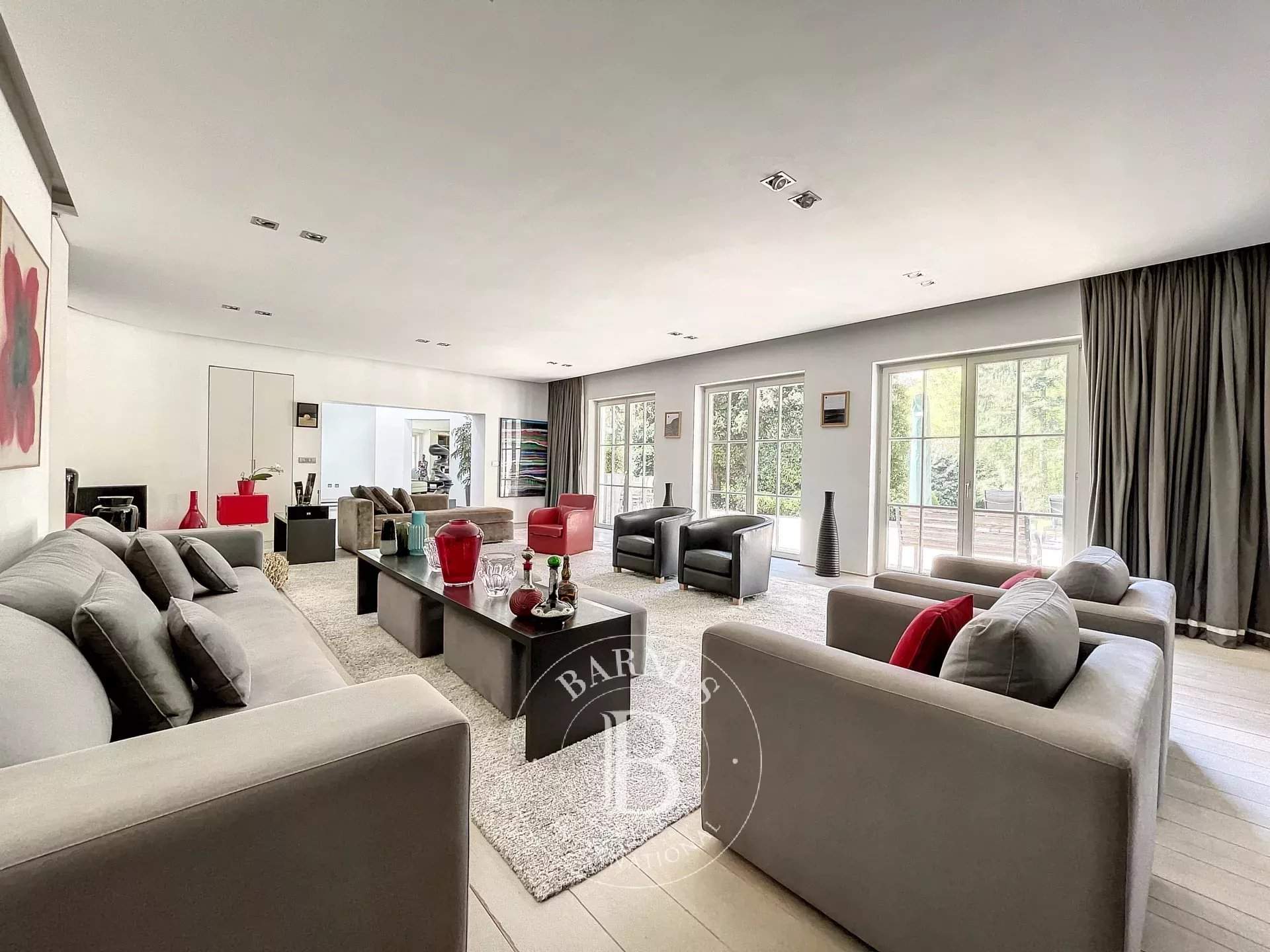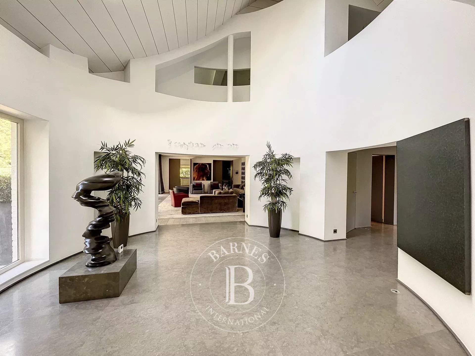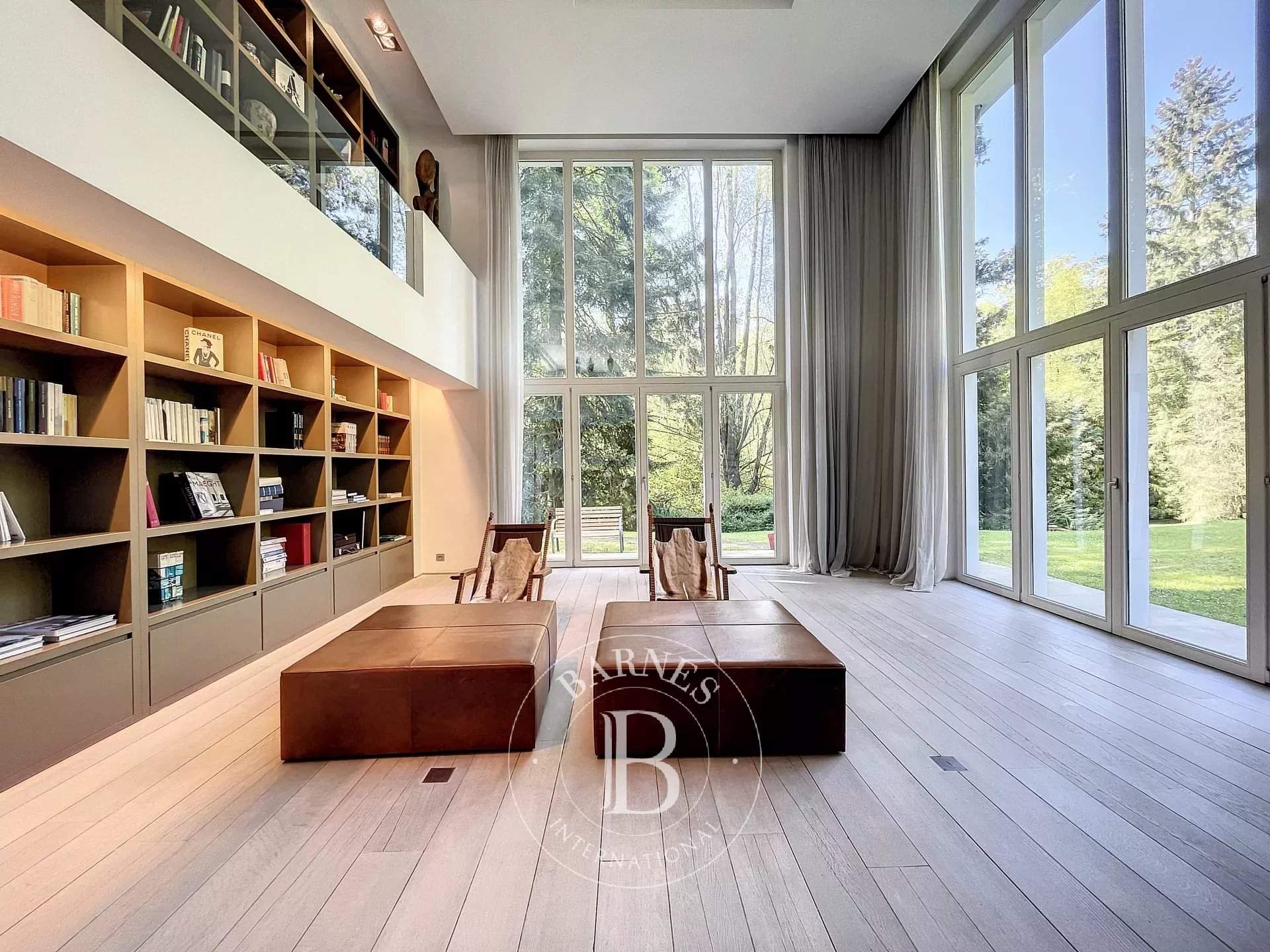 Barnes is privileged to present an exceptional property, designed by Claire Bataille and Olivier Dwek, emblematic figures of contemporary architecture, and built in 2002. With a gross living area of 765 m² (source PEB) and nestled in 56 acres of beautifully wooded, south-facing grounds, this property elegantly combines art de vivre, rare volumes and omnipresent light. The south-facing garden, a veritable jewel-case of greenery, invites you to relax and contemplate. From the moment you enter, a spectacular hall welcomes you, revealing the purity of its lines and the subtlety of its perspectives. The receptions, designed for refined entertaining, include a vast double living room, a sophisticated bar, a fully equipped designer kitchen with dining area, a service kitchen, a separate dining ro...