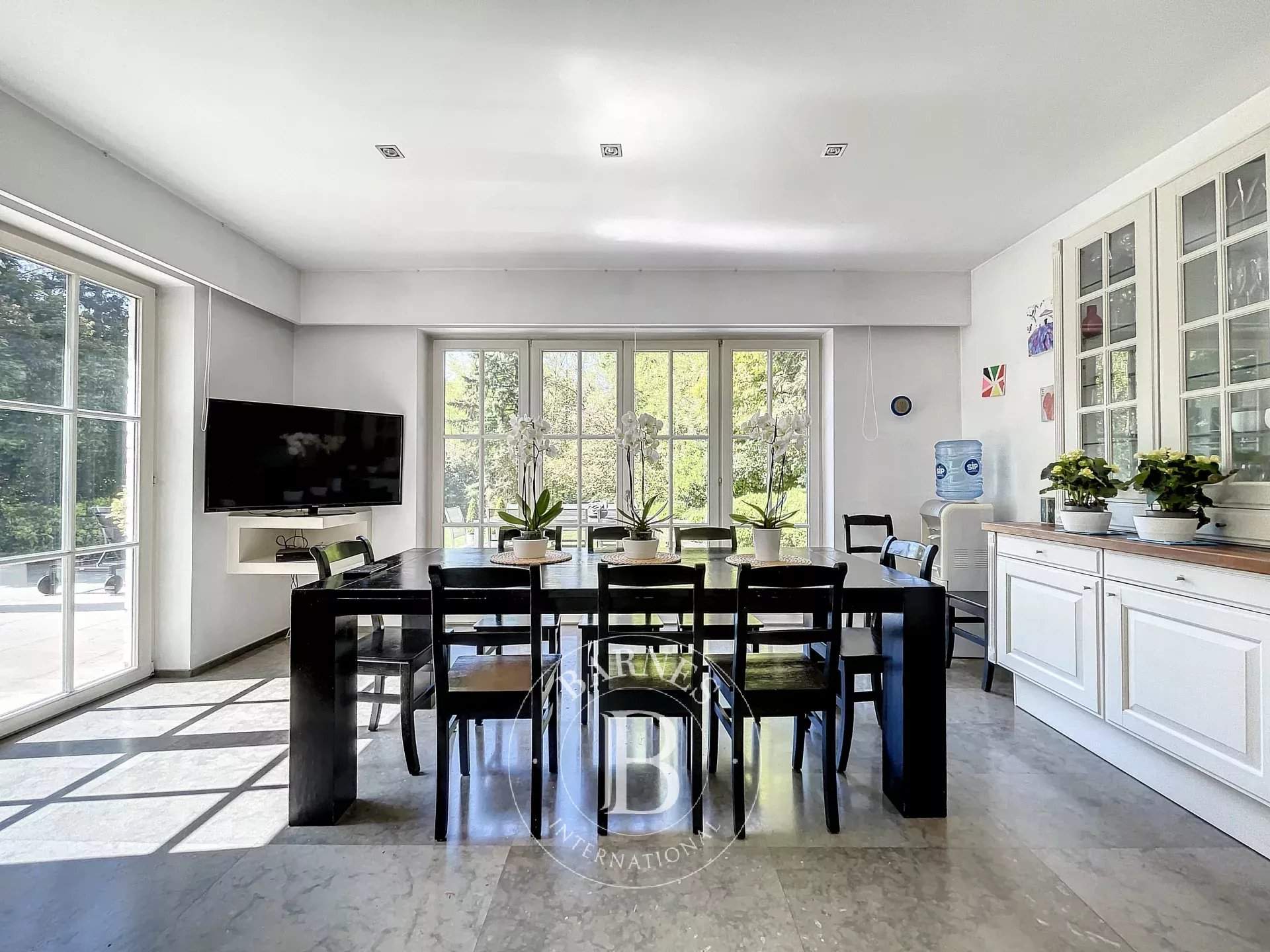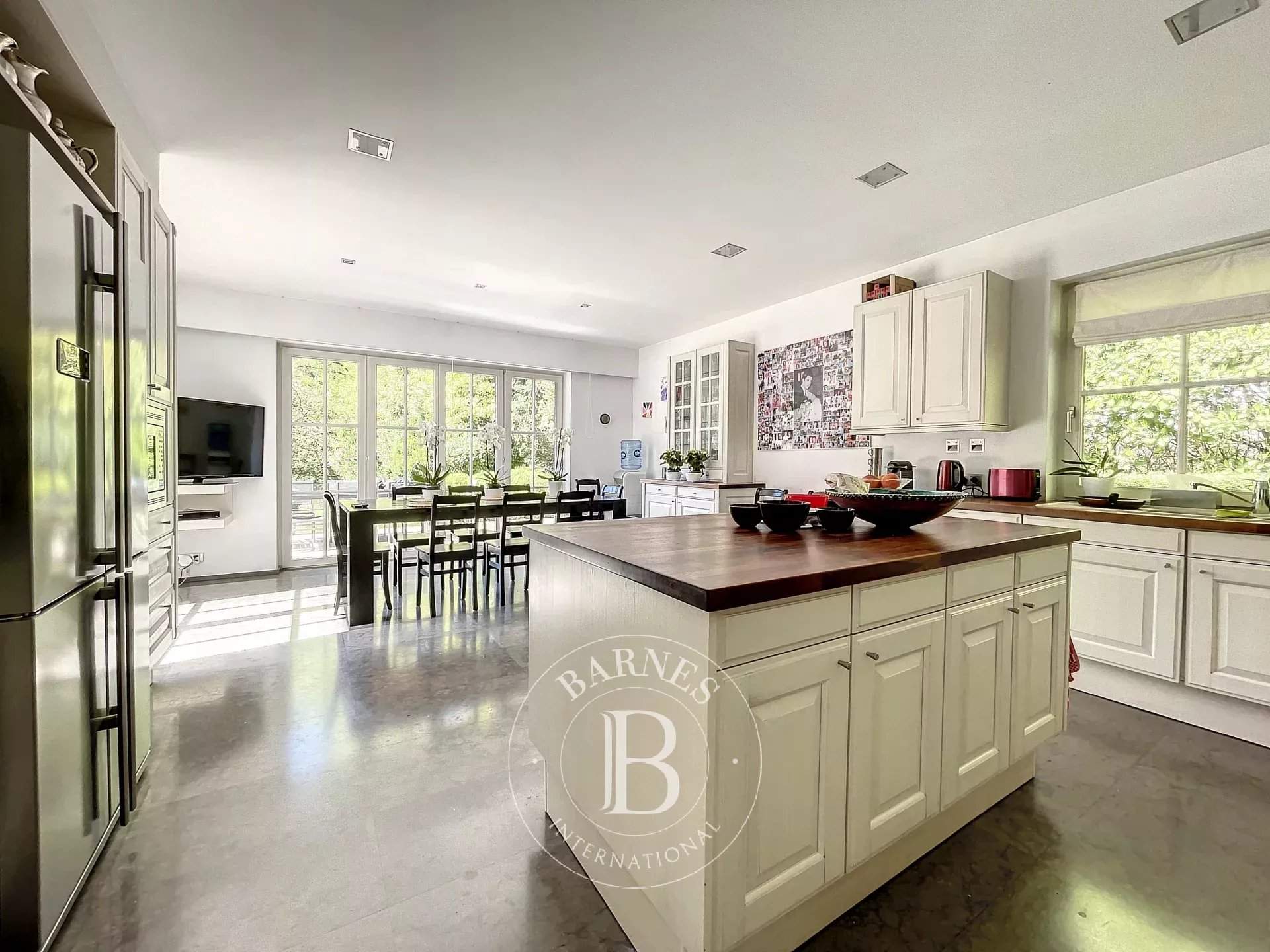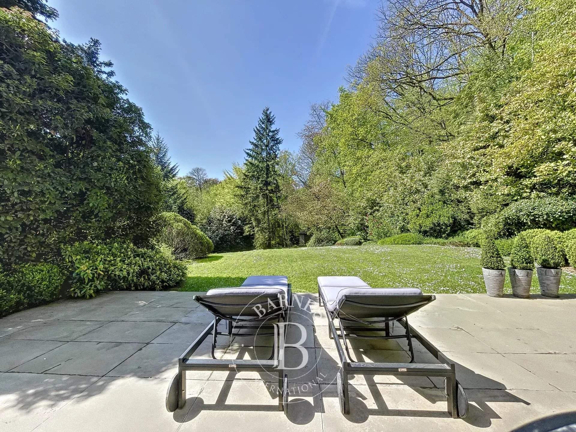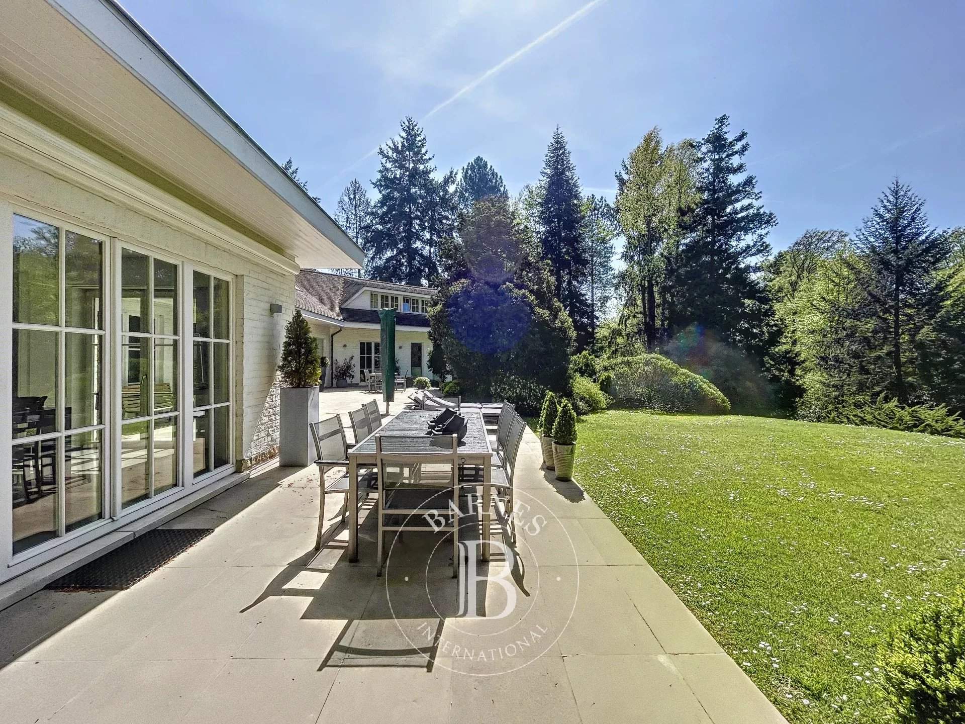 Barnes is privileged to present an exceptional property, designed by Claire Bataille and Olivier Dwek, emblematic figures of contemporary architecture, and built in 2002. With a gross living area of 765 m² (source PEB) and nestled in 56 acres of beautifully wooded, south-facing grounds, this property elegantly combines art de vivre, rare volumes and omnipresent light. The south-facing garden, a veritable jewel-case of greenery, invites you to relax and contemplate. From the moment you enter, a spectacular hall welcomes you, revealing the purity of its lines and the subtlety of its perspectives. The receptions, designed for refined entertaining, include a vast double living room, a sophisticated bar, a fully equipped designer kitchen with dining area, a service kitchen, a separate dining ro...