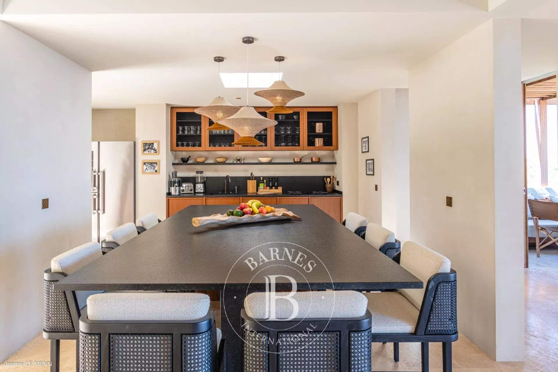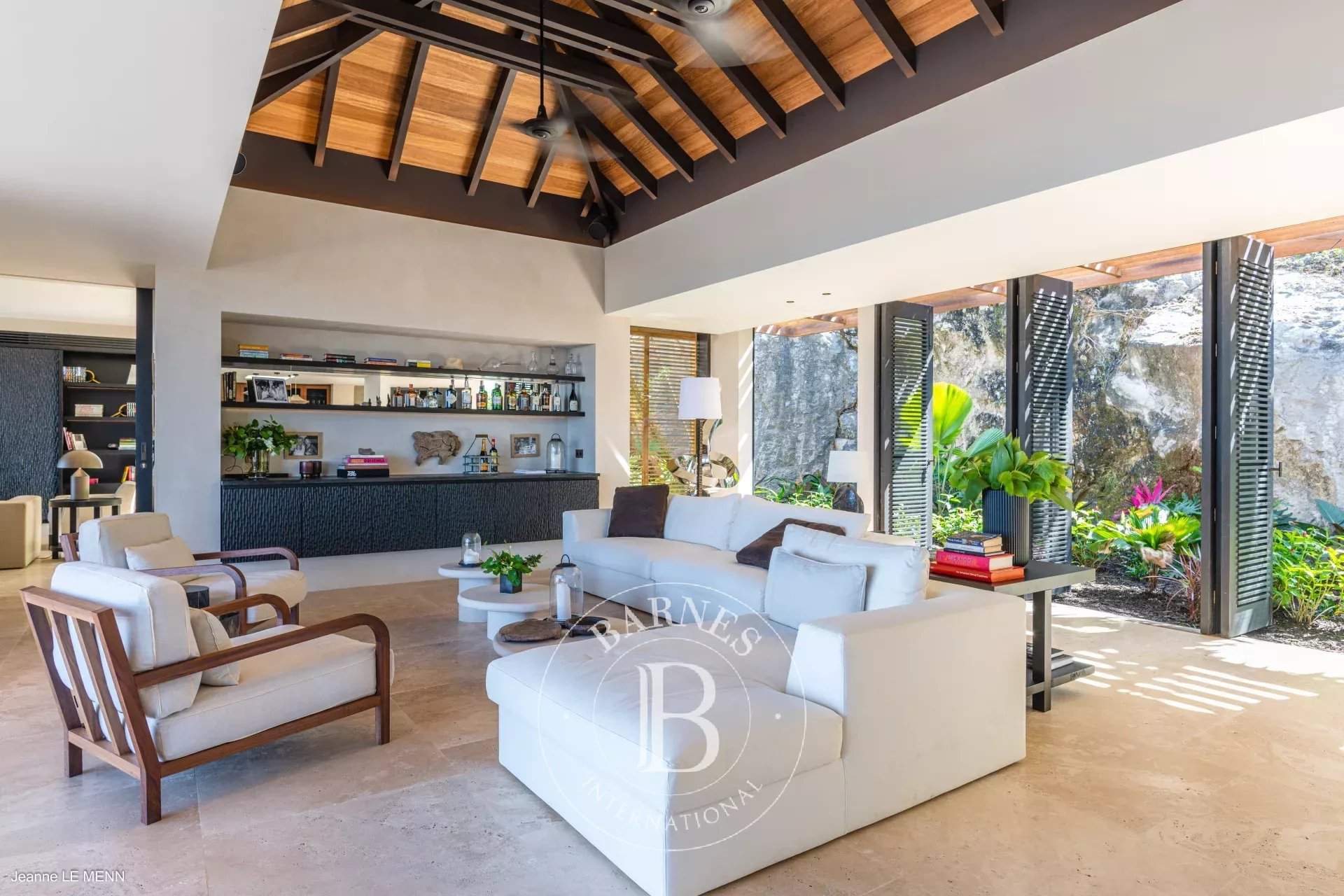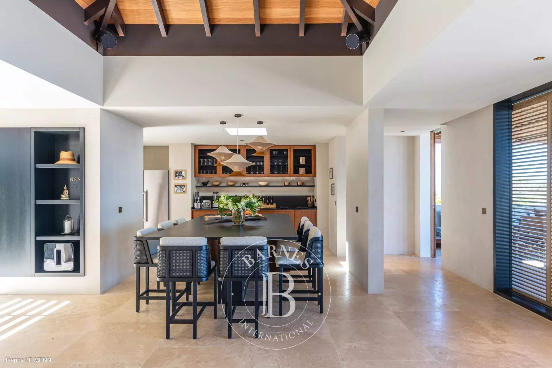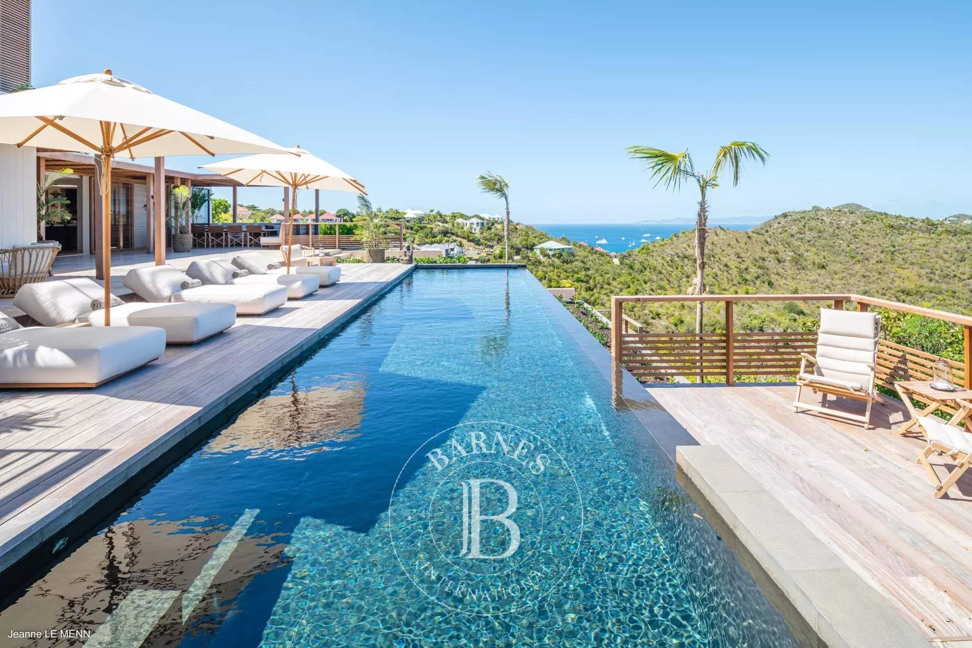 The Villa NSN is a beautiful property with a refined, modern design, built and decorated by one of the island's most renowned architects. It offers panoramic views of the Caribbean Sea. A luxurious villa with meticulous decoration, it has 4 bedrooms with en-suite bathrooms, all of equal size. The property offers vast living spaces opening onto the magnificent terrace, from which you can enjoy the beauty of the surroundings, and the sublime sea view. Situated in a very private estate, just a 5-minute drive from Gustavia and its amenities, as well as Gouverneur beach, the villa enjoys a privileged and highly sought-after location on the island. The presentation price includes negotiation fees, at the buyer's cost on behalf of the seller....