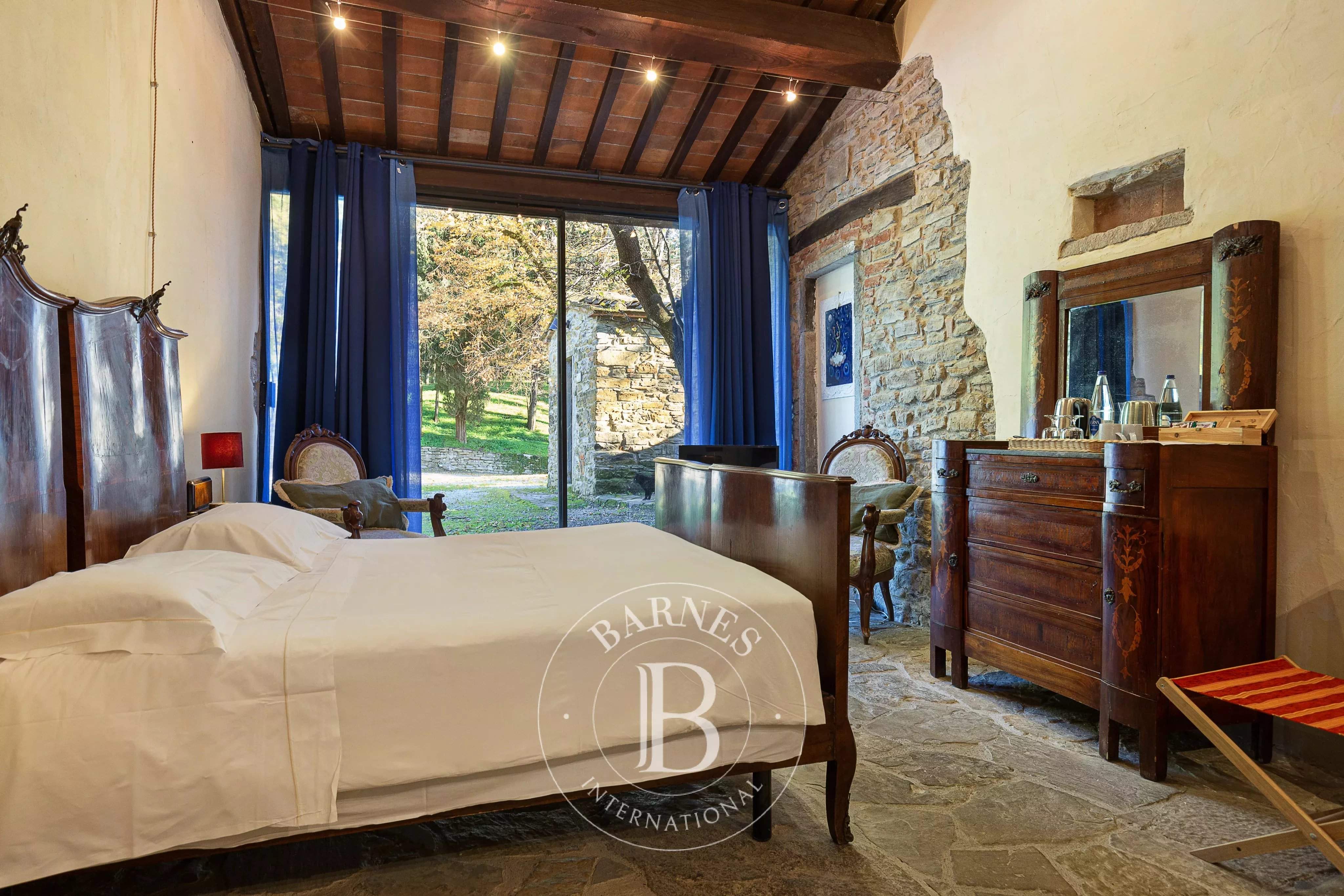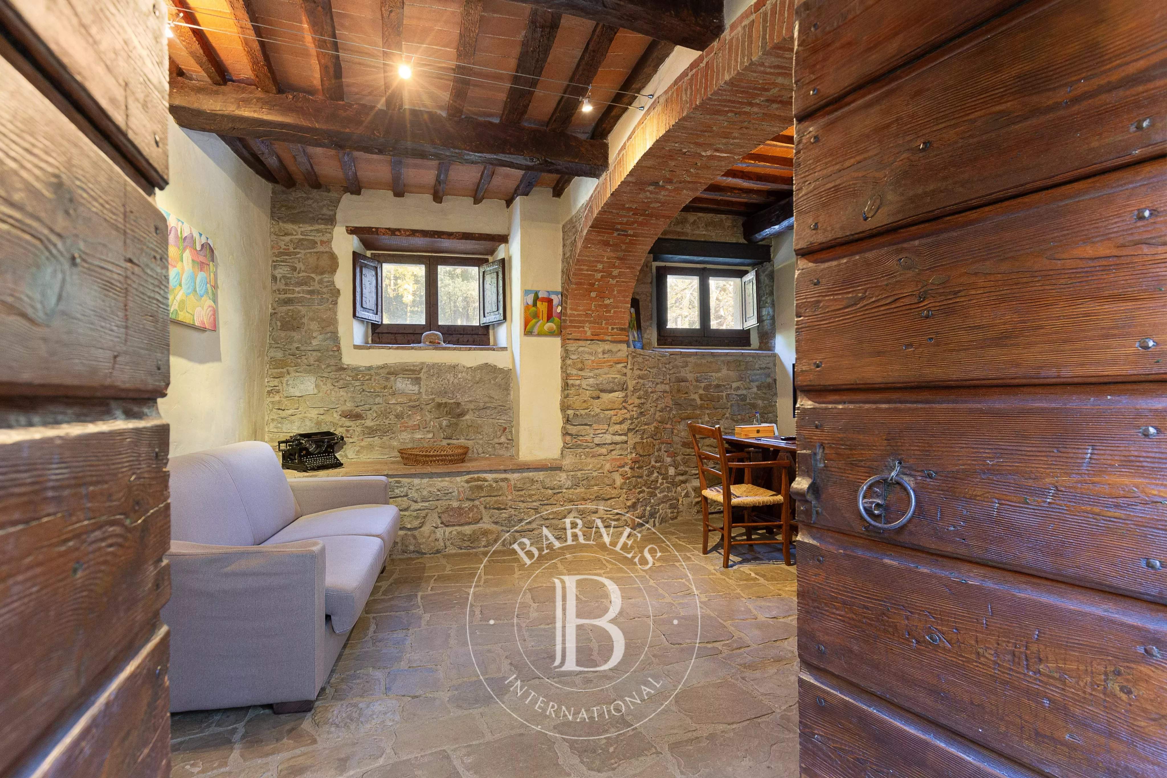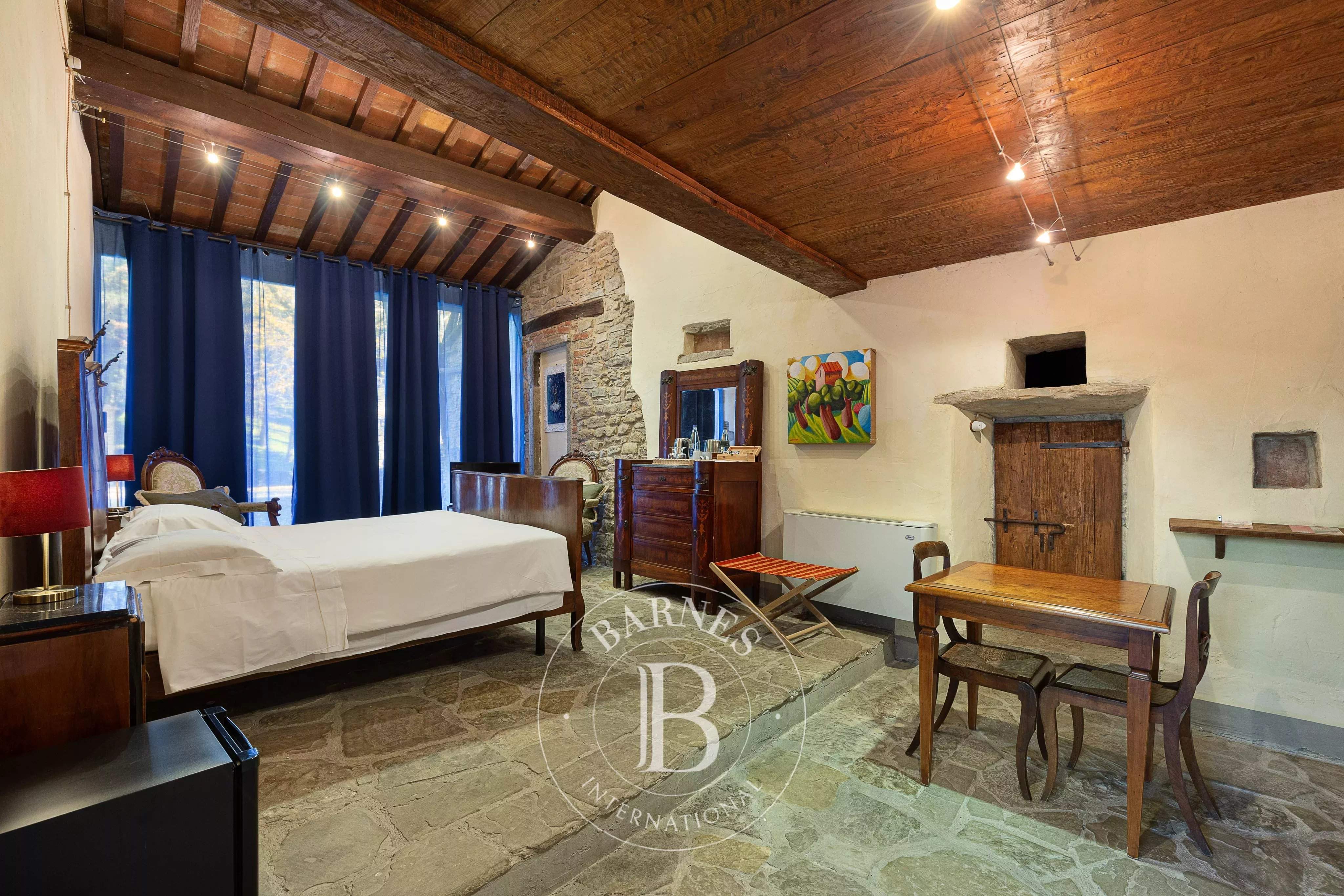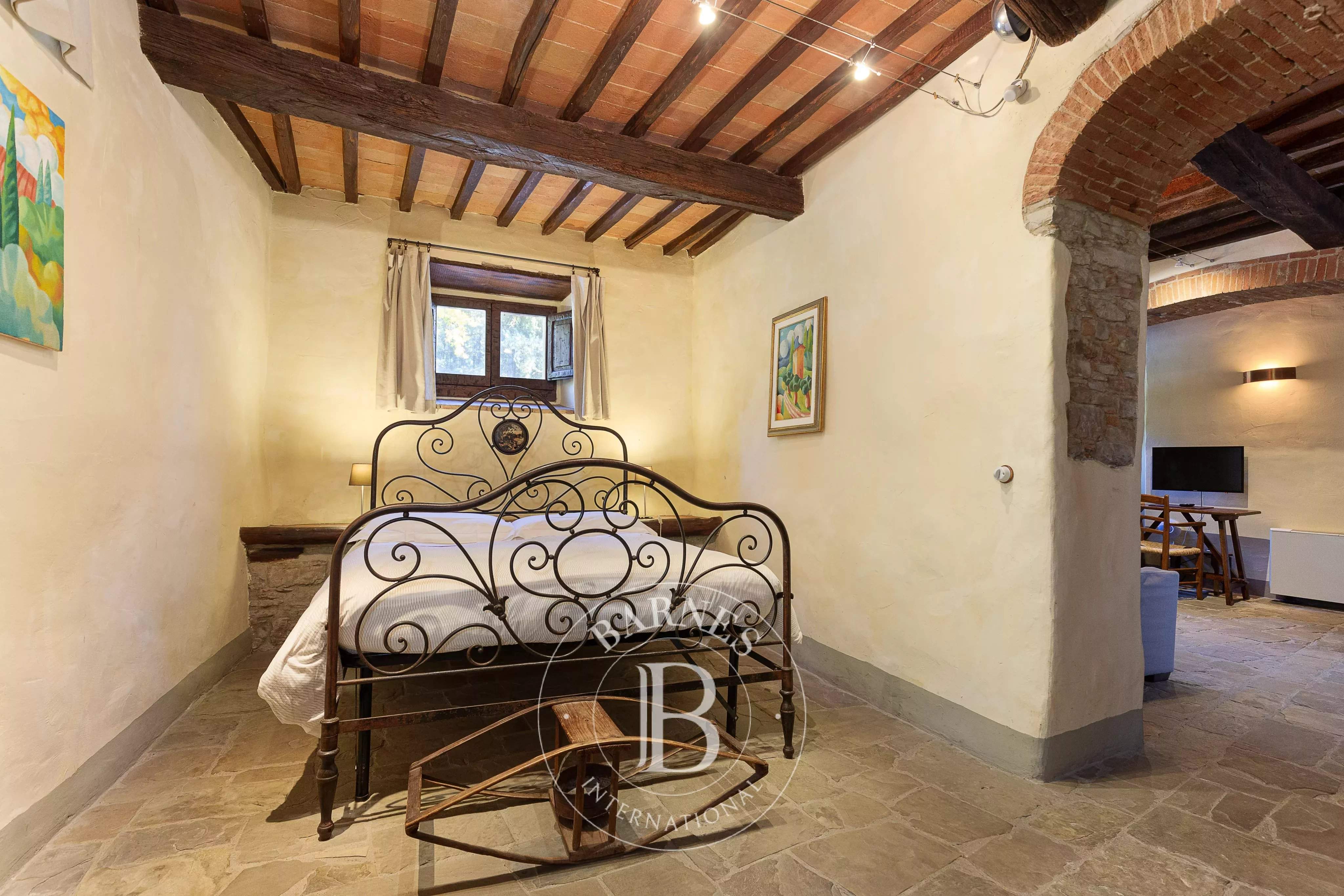 Immersed in the tranquillity of the Aretine hills, in the heart of Tuscany, this extraordinary relais represents a perfect synthesis of historical authenticity and contemporary comfort. Surrounded by lush vineyards, olive groves and private woods, the property stretches across a picture postcard landscape, offering a unique opportunity for those seeking an exclusive real estate investment or a prestigious private residence. The structure, of medieval origins, has been skilfully restored to preserve the charm of the past, bringing to light original materials such as jambs, stones and lintels, perfectly integrated with modern amenities such as high-speed internet, satellite TV and air conditioning. The property consists of five elegant suites, an independent villa called 'Baiellina' and an a...