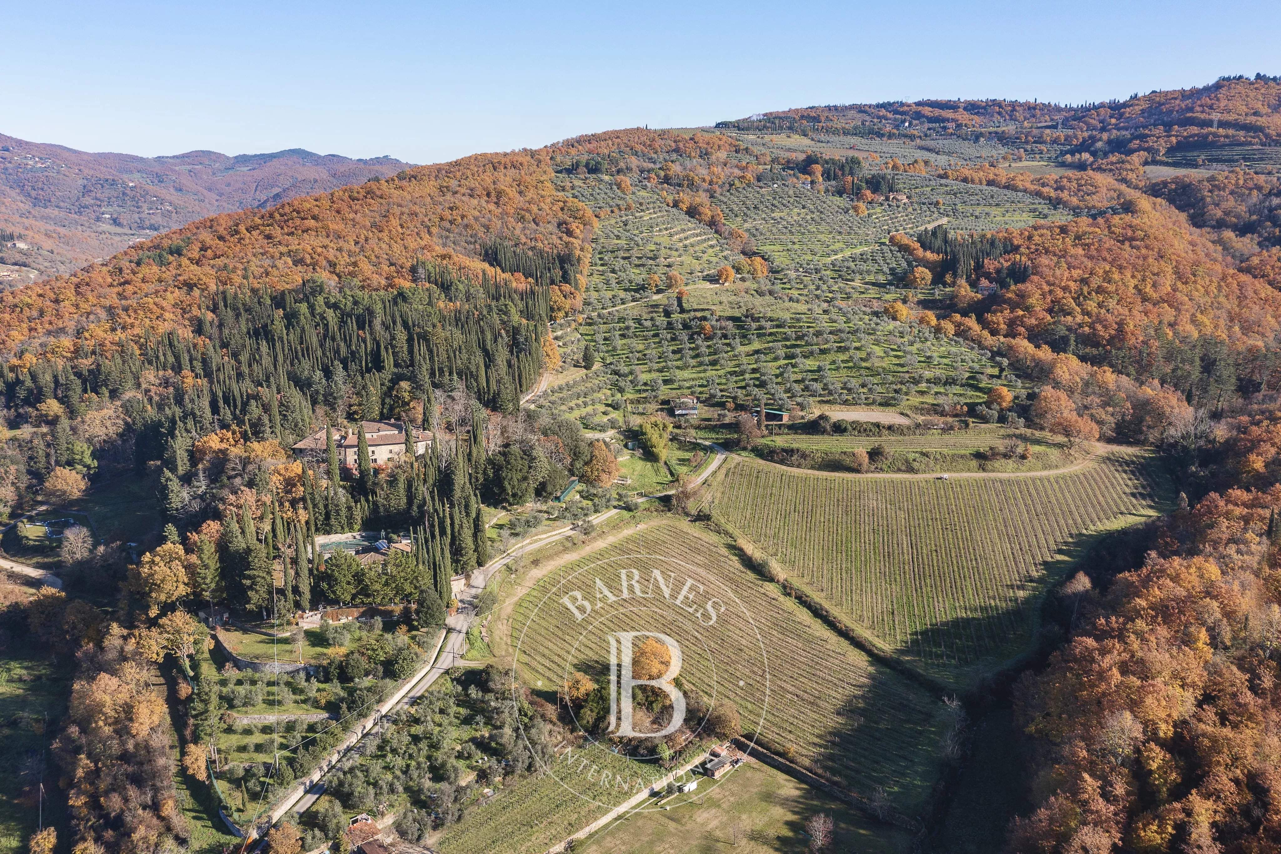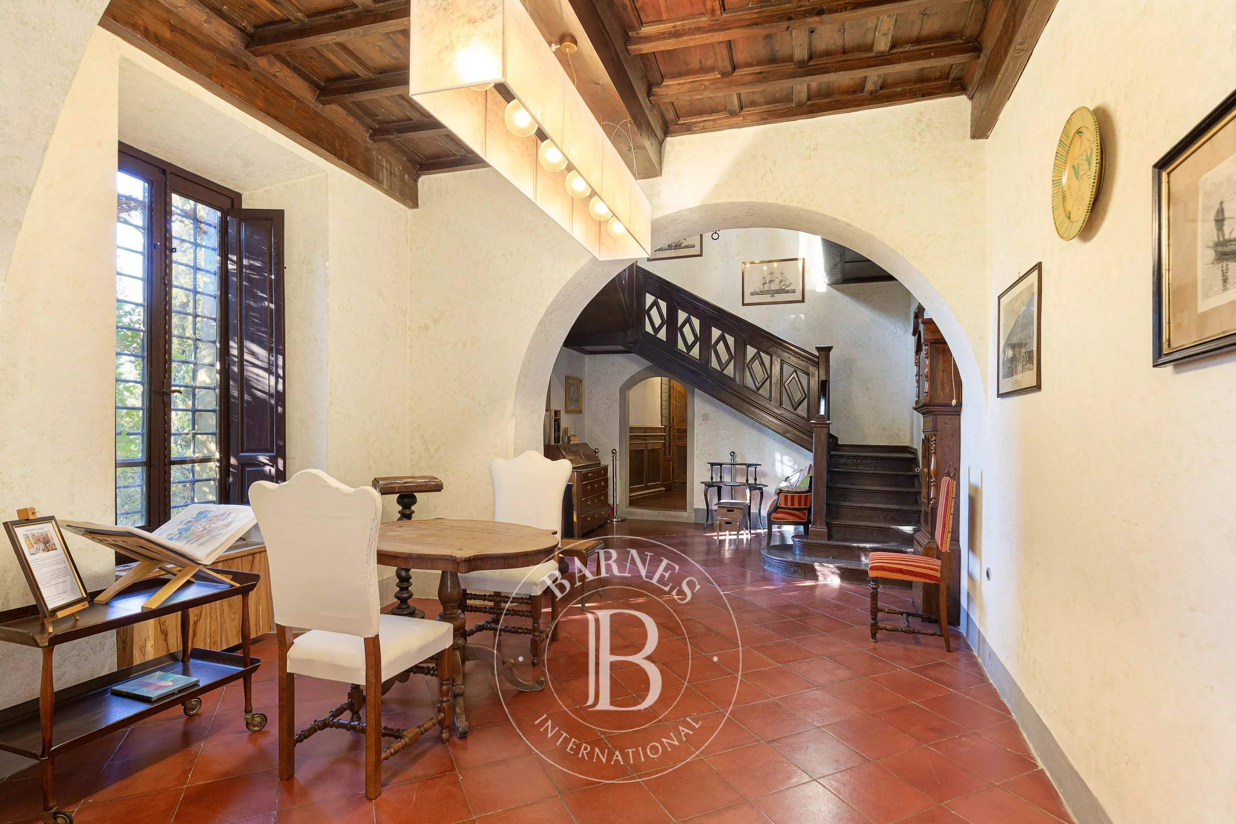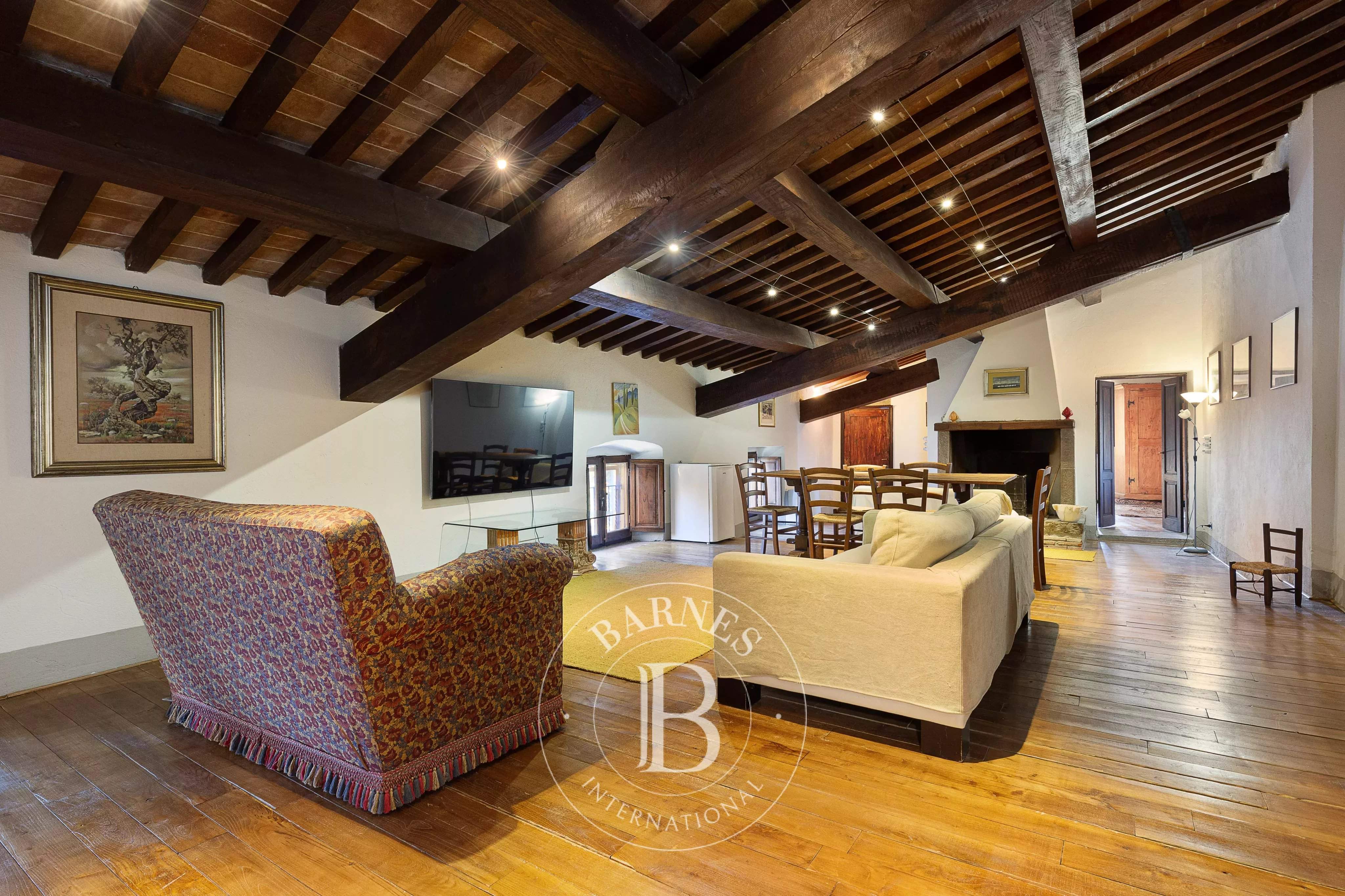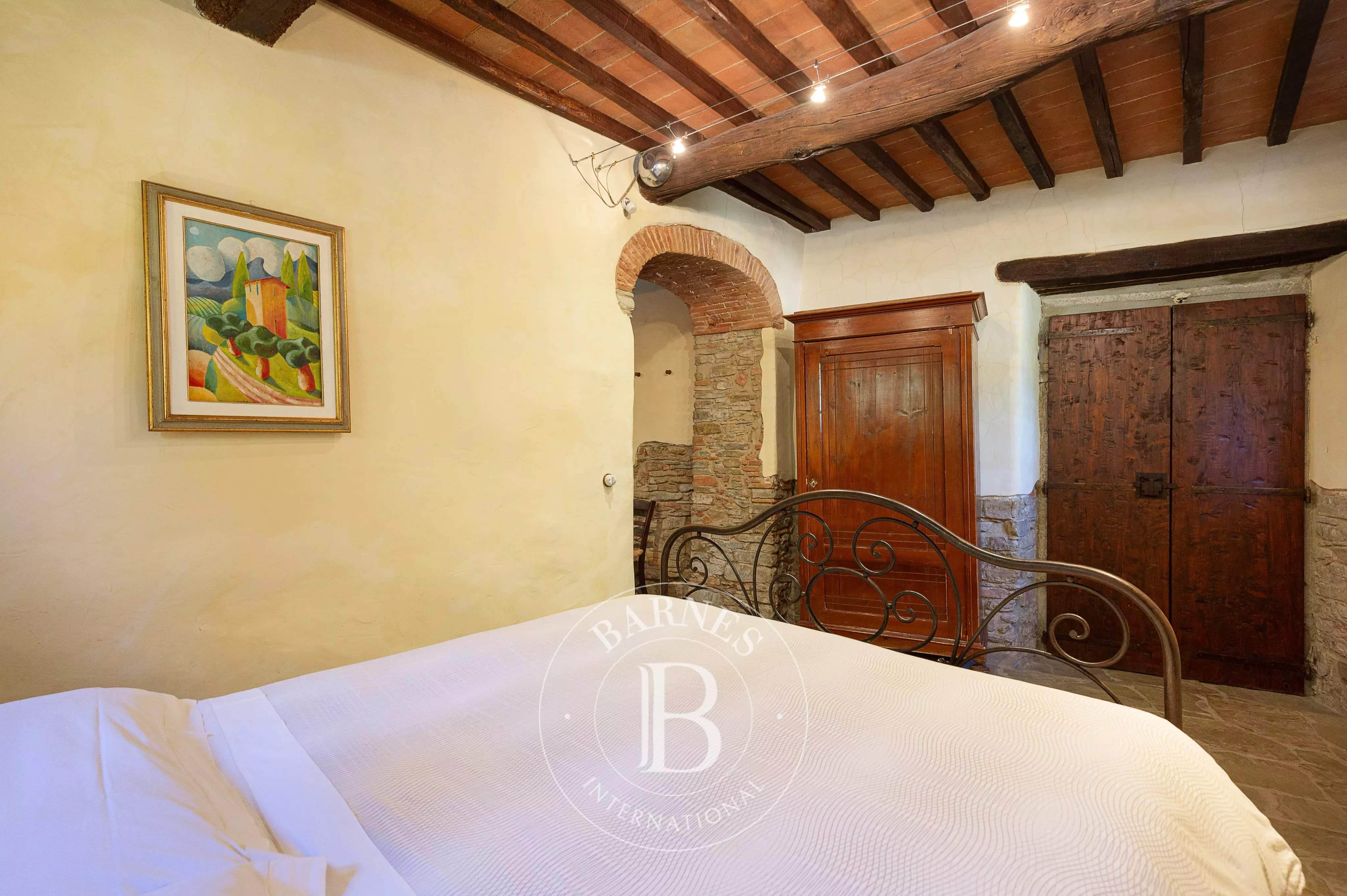 Immersed in the tranquillity of the Aretine hills, in the heart of Tuscany, this extraordinary relais represents a perfect synthesis of historical authenticity and contemporary comfort. Surrounded by lush vineyards, olive groves and private woods, the property stretches across a picture postcard landscape, offering a unique opportunity for those seeking an exclusive real estate investment or a prestigious private residence. The structure, of medieval origins, has been skilfully restored to preserve the charm of the past, bringing to light original materials such as jambs, stones and lintels, perfectly integrated with modern amenities such as high-speed internet, satellite TV and air conditioning. The property consists of five elegant suites, an independent villa called 'Baiellina' and an a...