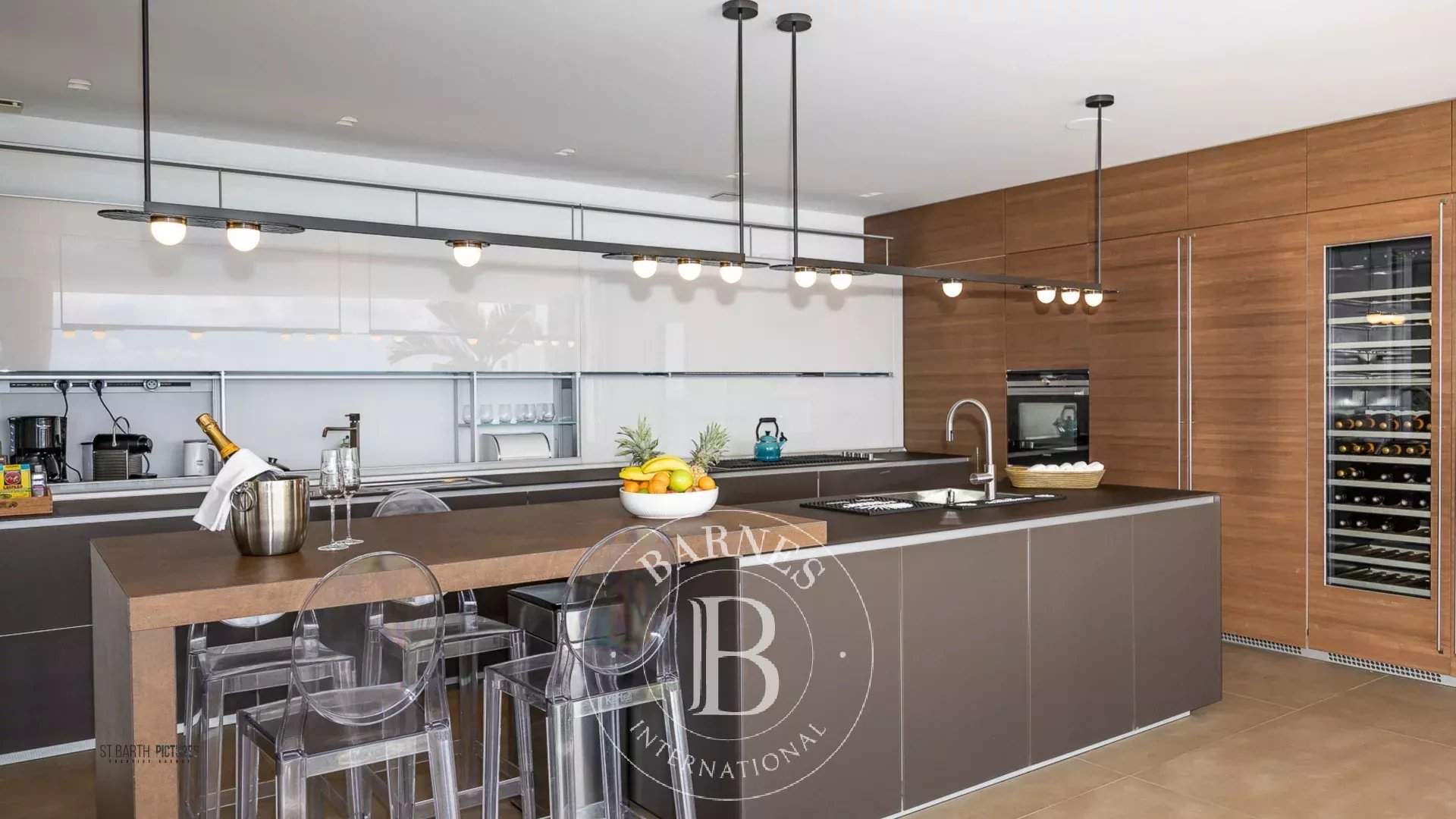 Located in Corossol, on the heights of Saint-Barthélemy, this rare property enjoys an exceptional location with breathtaking views of the Caribbean Sea. Just minutes from Gustavia, its restaurants, boutiques, and the beach, the villa offers a prestigious lifestyle combining privacy and proximity to local amenities. Villa UTC features 5 bedrooms, each with its own en-suite bathroom, a spacious living area, an indoor kitchen, an outdoor kitchen, a fitness room, and an infinity pool. A covered parking area for multiple vehicles ensures convenient and discreet access to the property. With its elegant architecture, generous volumes, and high-end finishes, this villa perfectly embodies the art of living in Saint-Barthélemy. The presentation price includes negotiation fees, at the buyer's cost on...
